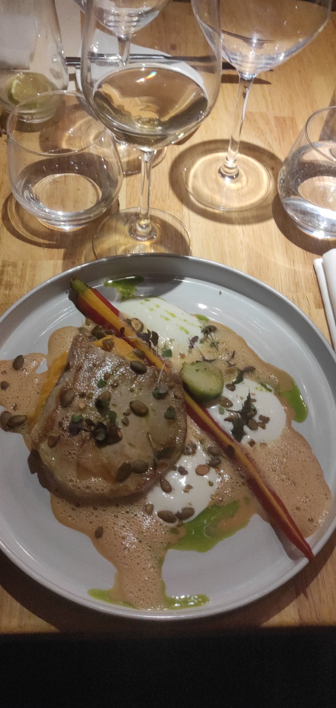 Je ne cherche pas à plomber la note de ce bon restaurant donc je mets 4 etoiles. Mais vu que c'était recommandé par Gault et Millau, je m'attendais peut être à un peu mieux. Dans l'ensemble, le menu dégustation vaut le détour, de bonnes surprises qui twistent' et accompagnent les plats à merveilles. Mais je n'ai pas eu un coup de cœur pour un plat en particulier. Pour information, nous avons pris 2 menus dégustation avec ma compagne. Au final, un manque de cuisson sur les accompagnements du plat principal (carotte et echallote trop ferme), une bonne sauce aurait été vraiment un plus. Les emulsions c'est bien mais les sauces amènent une autre dimension à un plat. Ce n'était qu'une première expérience dans ce resto. Et comme je le dis toujours: il faut tester un restaurant plusieurs fois avant d'avoir un jugement tranché. Continuez comme ça, ça vaut le coup! 👊