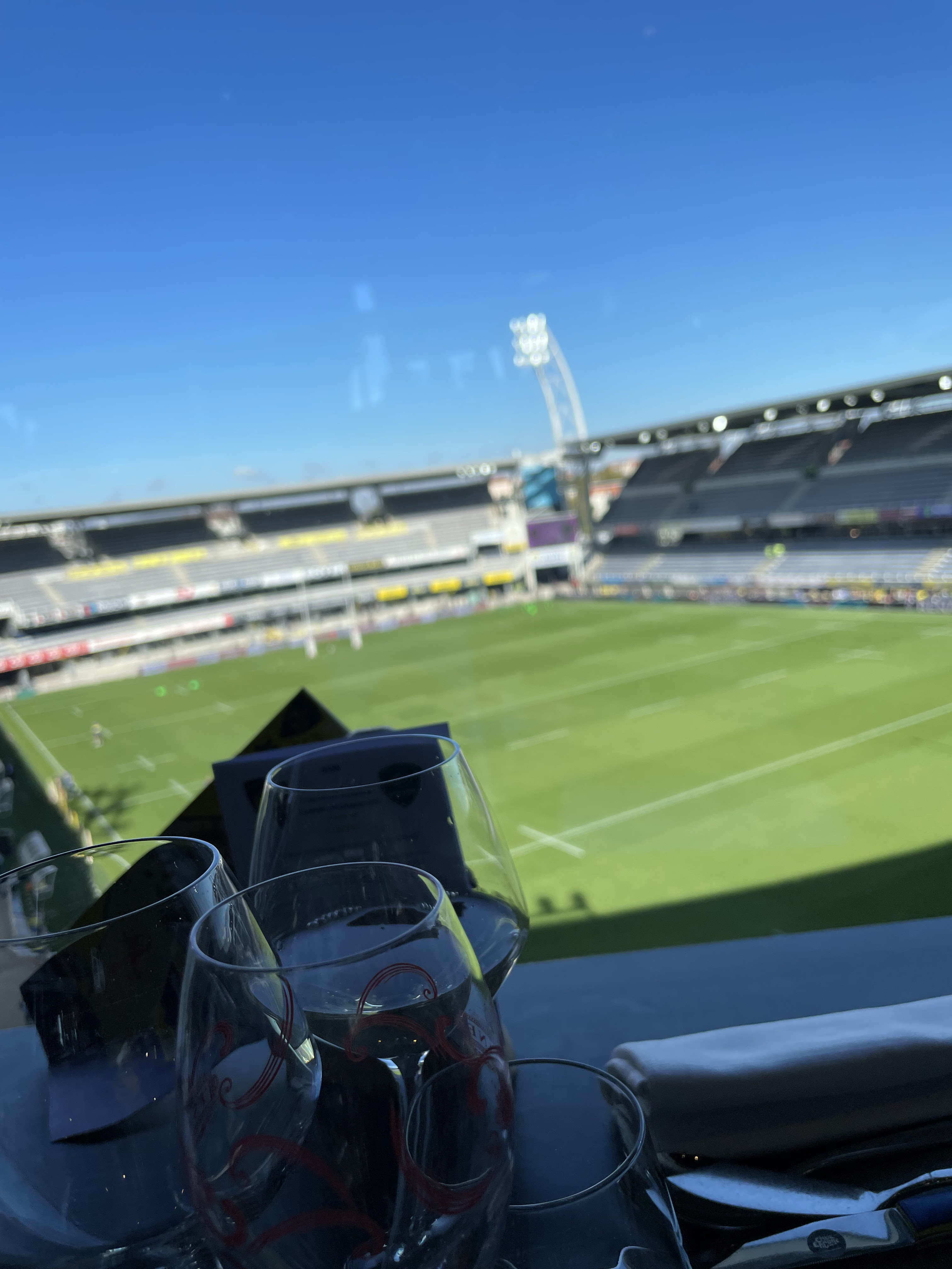Magnifique vue sur le terrain de rugby, je n'y suis pas allé pdt 1 match mais l'expérience doit être fantastique si vous êtes à la bonne table. Les plats sont bien présentés et plutôt bons voire originaux en terme de mélanges de saveurs. L'addition tourne autour de 50-60 euros sans le vin pour un menu complet. Si il n'y a pas de match ça reste un poil cher je trouve pour l'endroit