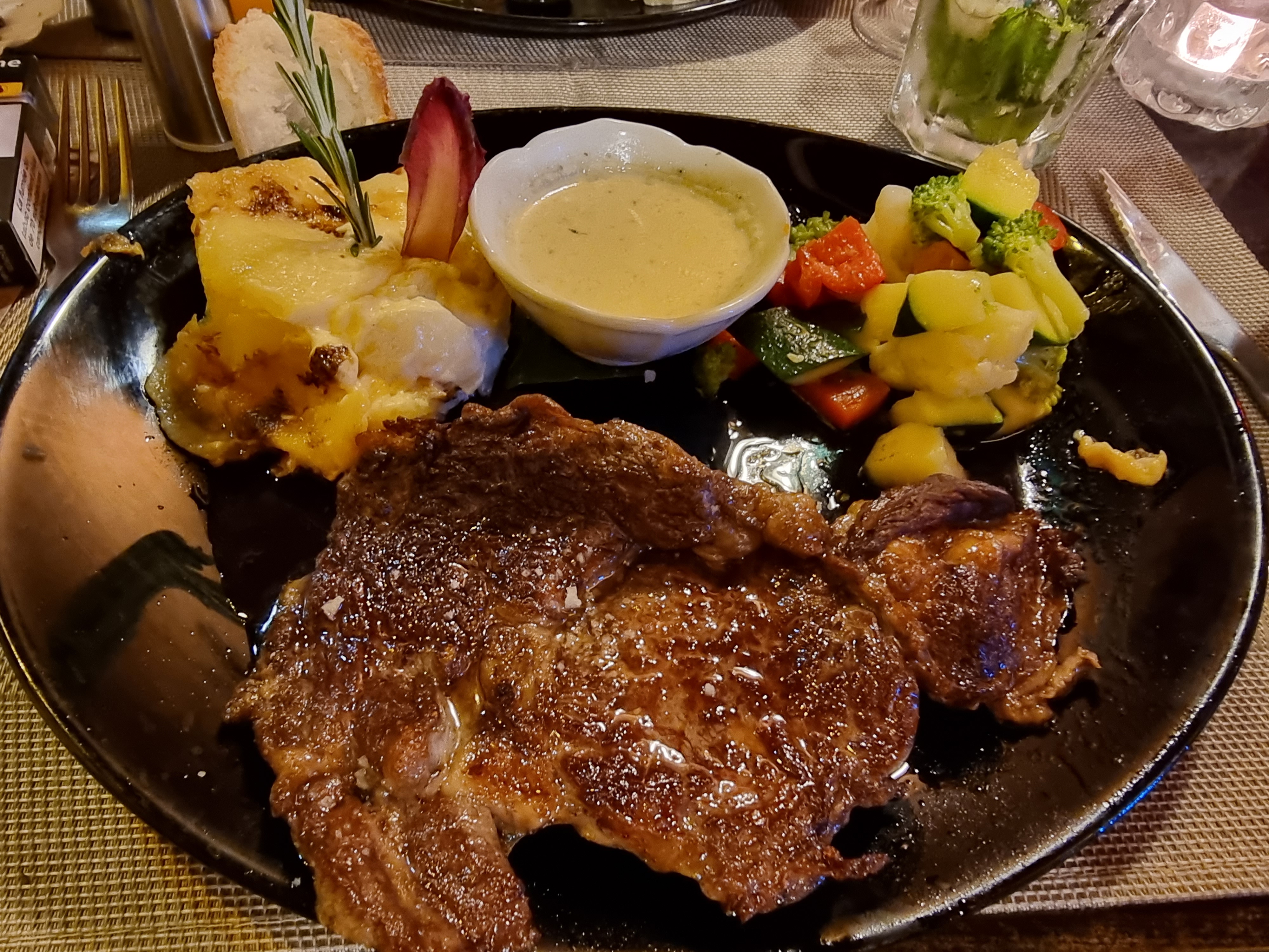 Très bon ! Dans l’assiette les légumes en accompagnement croquant , viande de qualité je recommande le rossini que nous trouvons de moins en moins dans les restaurants de la région. Si vous voulez manger une bonne viande c’est ici 👍