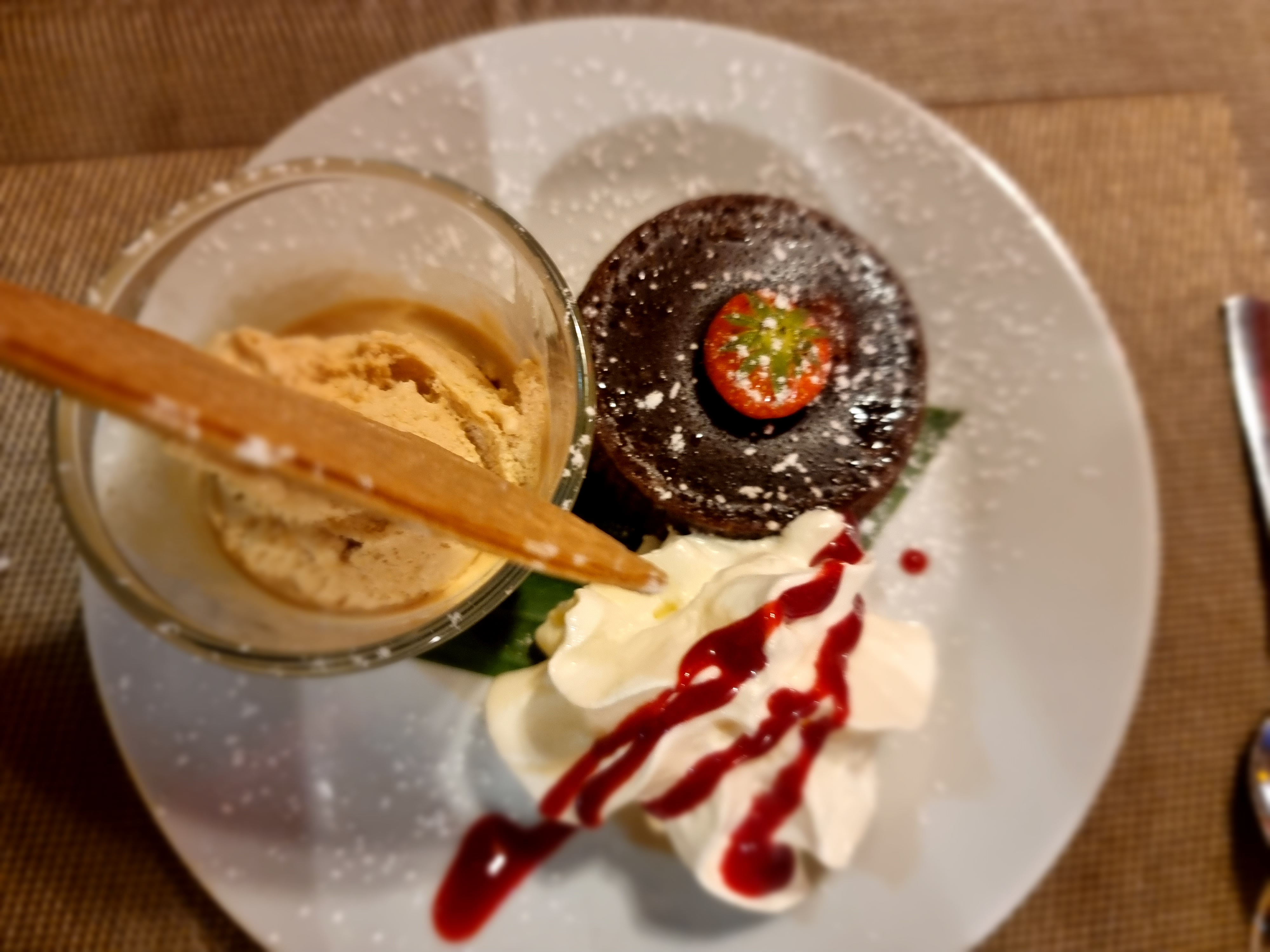 Nous avons été accepté assez tard pour prendre simplement un dessert, et le fondant au chocolat et la crème brûlée était très savoureux