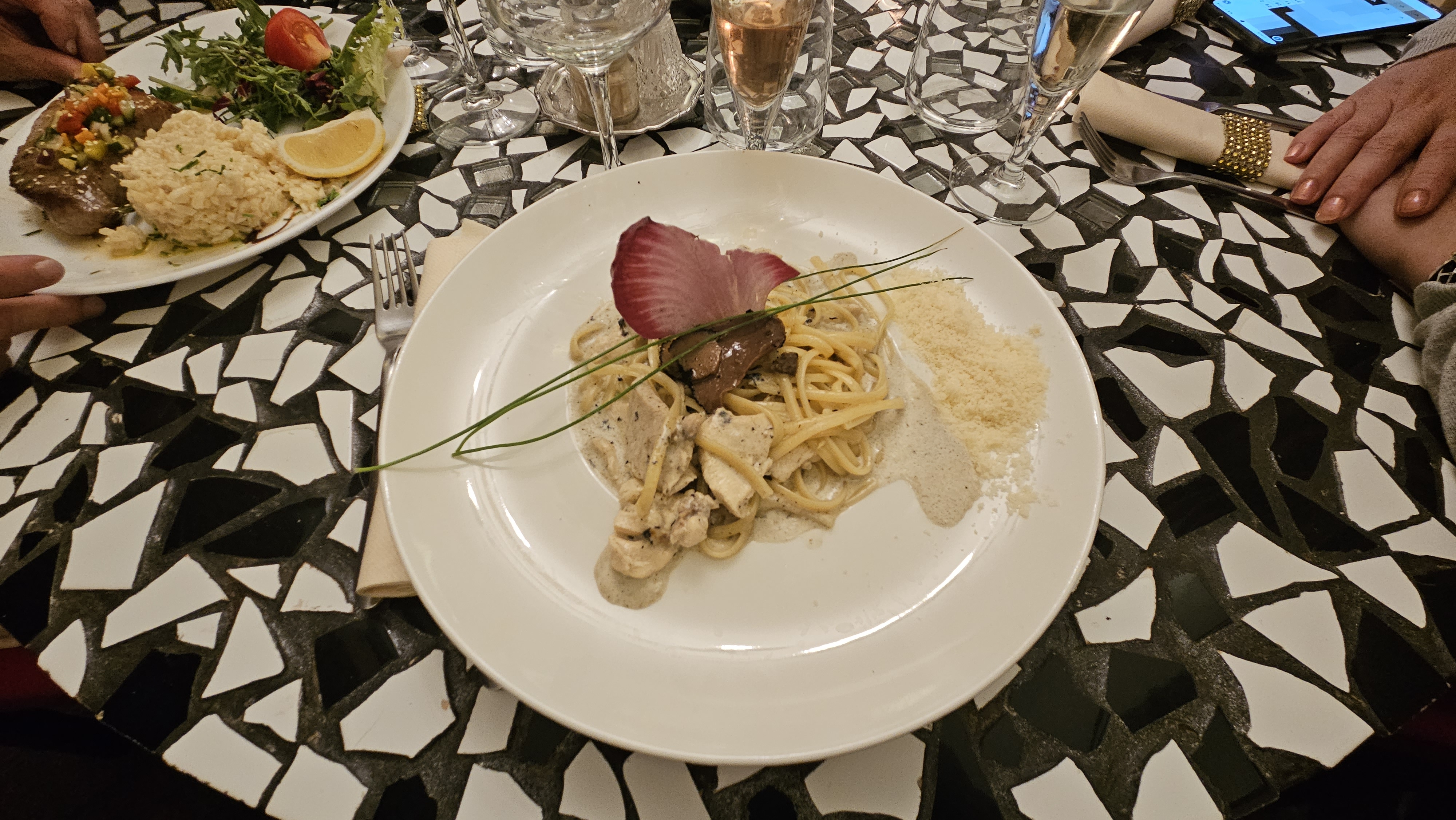 Cuisine vraiment bonne, surtout le risotto crème de truffe, cependant la bolognaise était moyenne à mon goût. Mais sinon vraiment cool