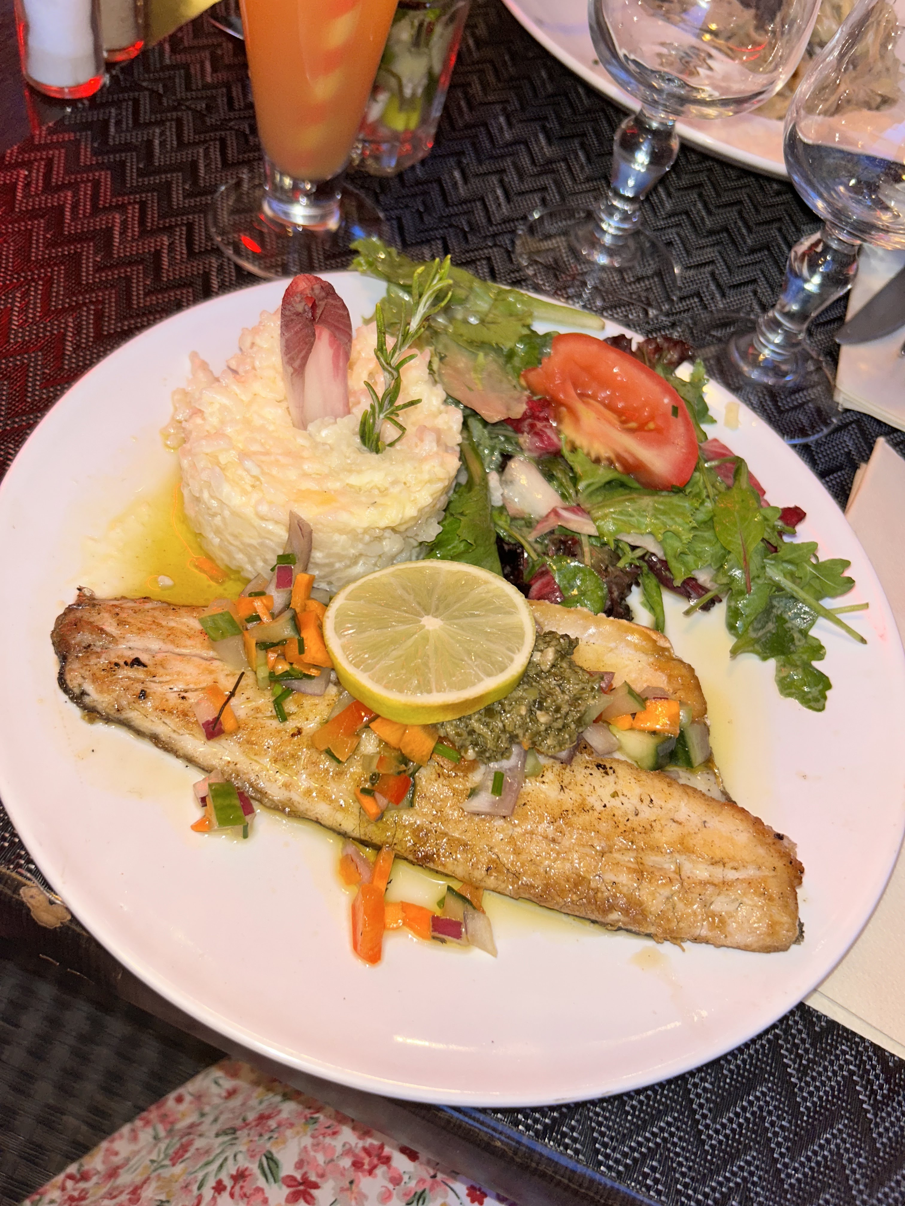 Un délice vraiment excellent. Je recommande ce restaurant. Le loup les gambas et autres . Le service très bien .