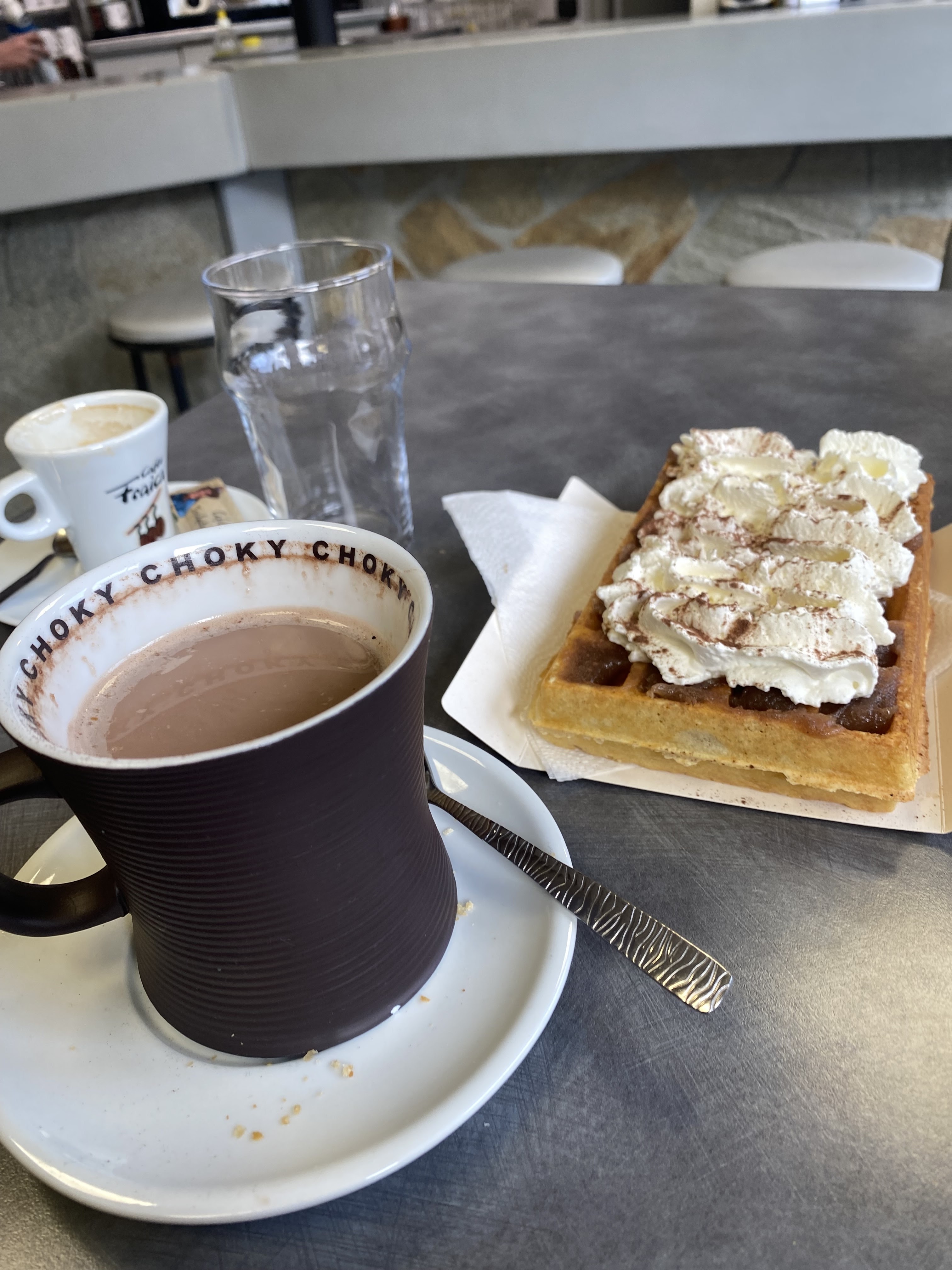 Gaufres, et boissons satisfaisants, mais accueil a revoir, vraiment pas chaleureux, et hautain a un point que nous avons rarement vu... Nous ne reviendrons pas.