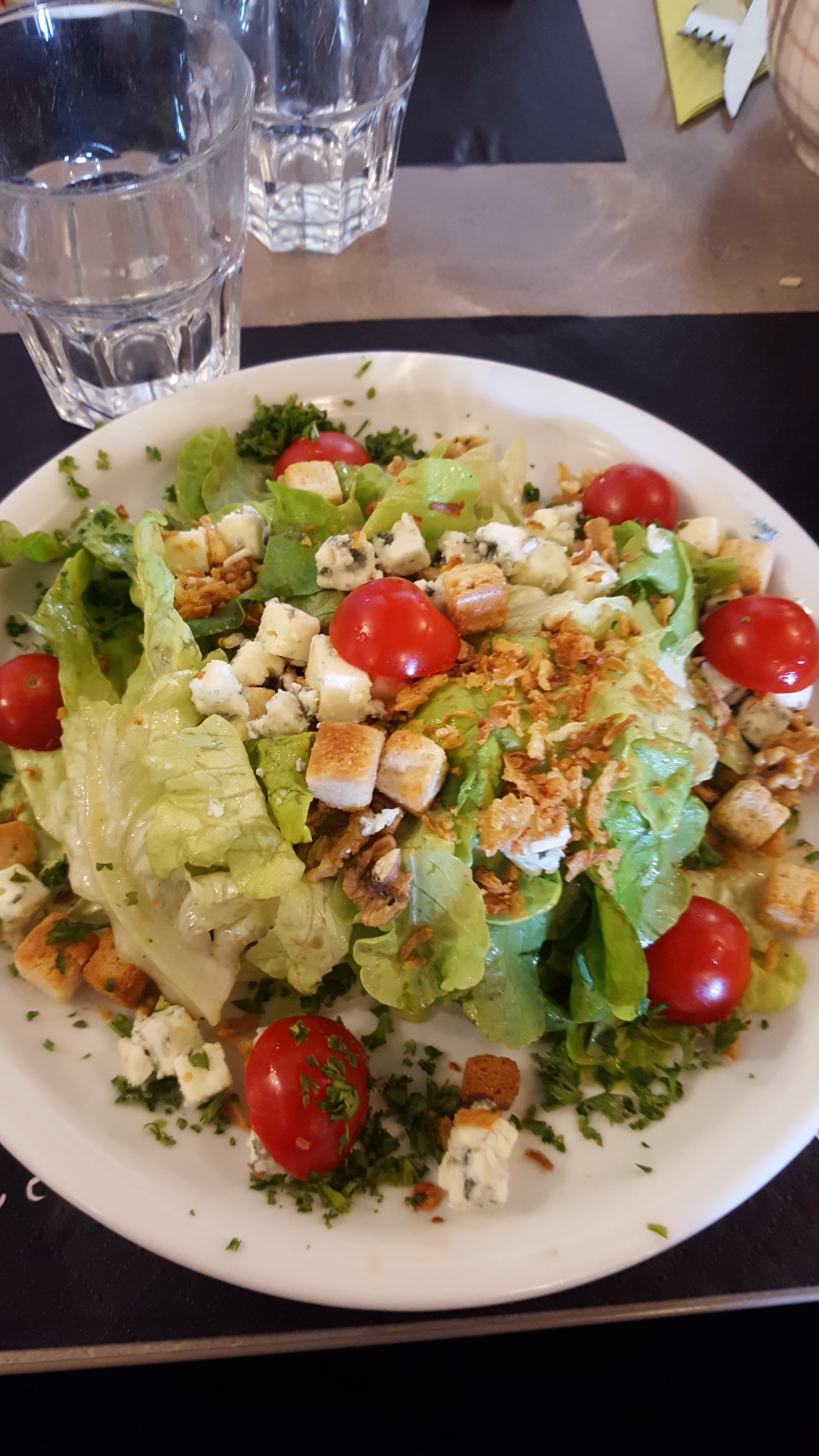 Excellent accueil même en arrivant tard. Les salades sont copieuses. L'entrecôte est bien préparée. Bonne crème brûlée.