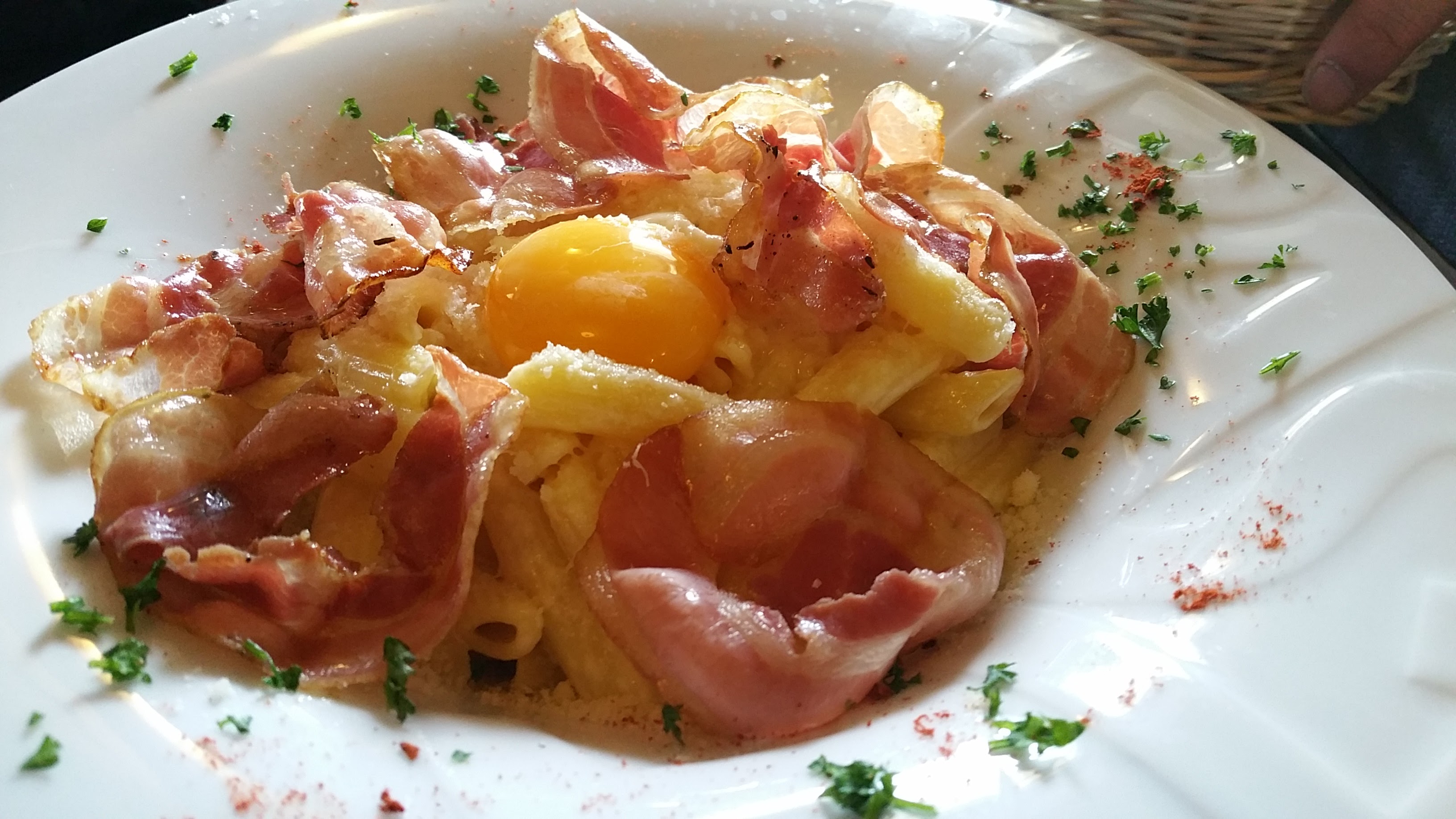 J'ai commandé un steak et des pâtes à la crème aux œufs. Ils étaient géniaux !