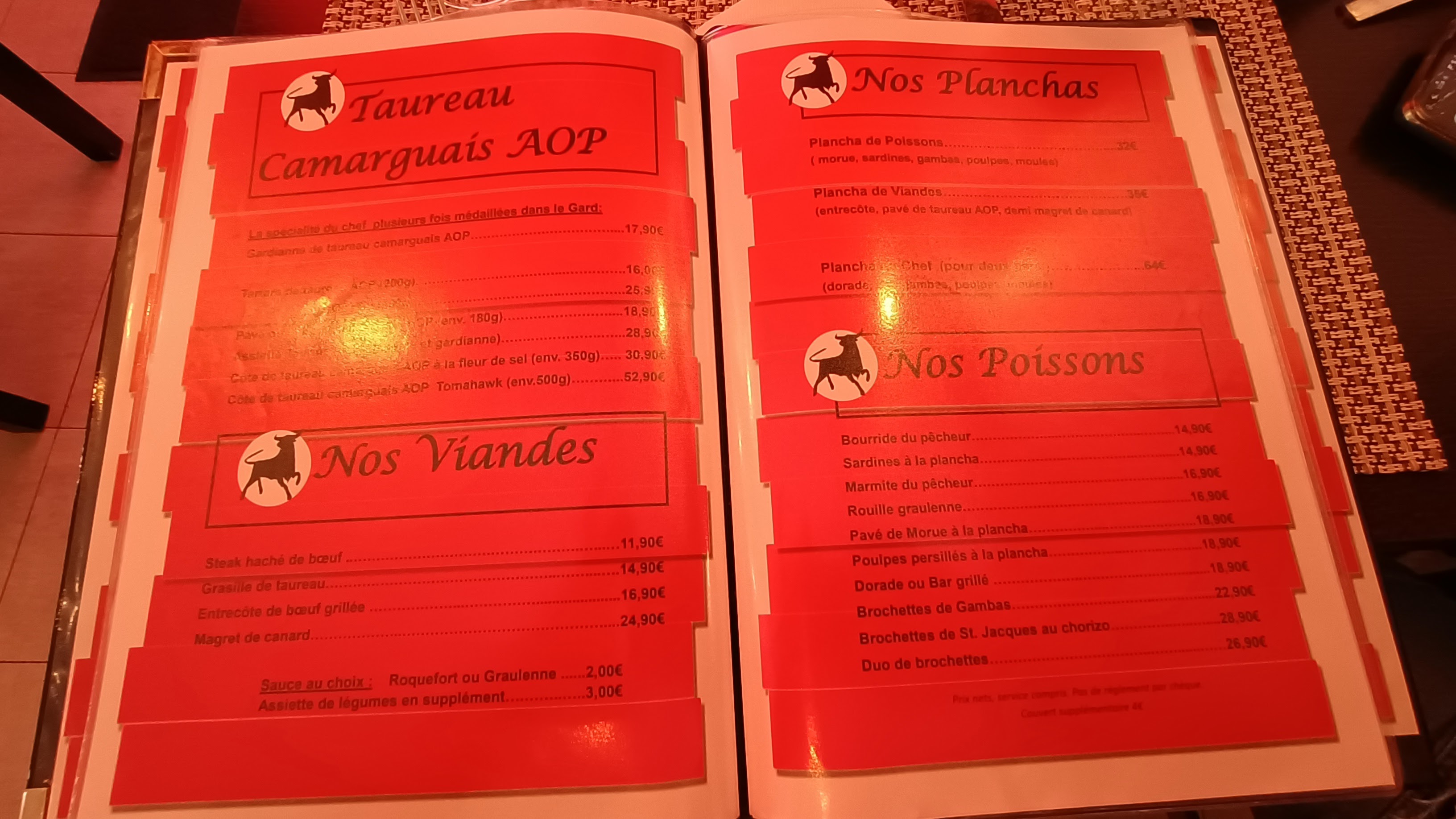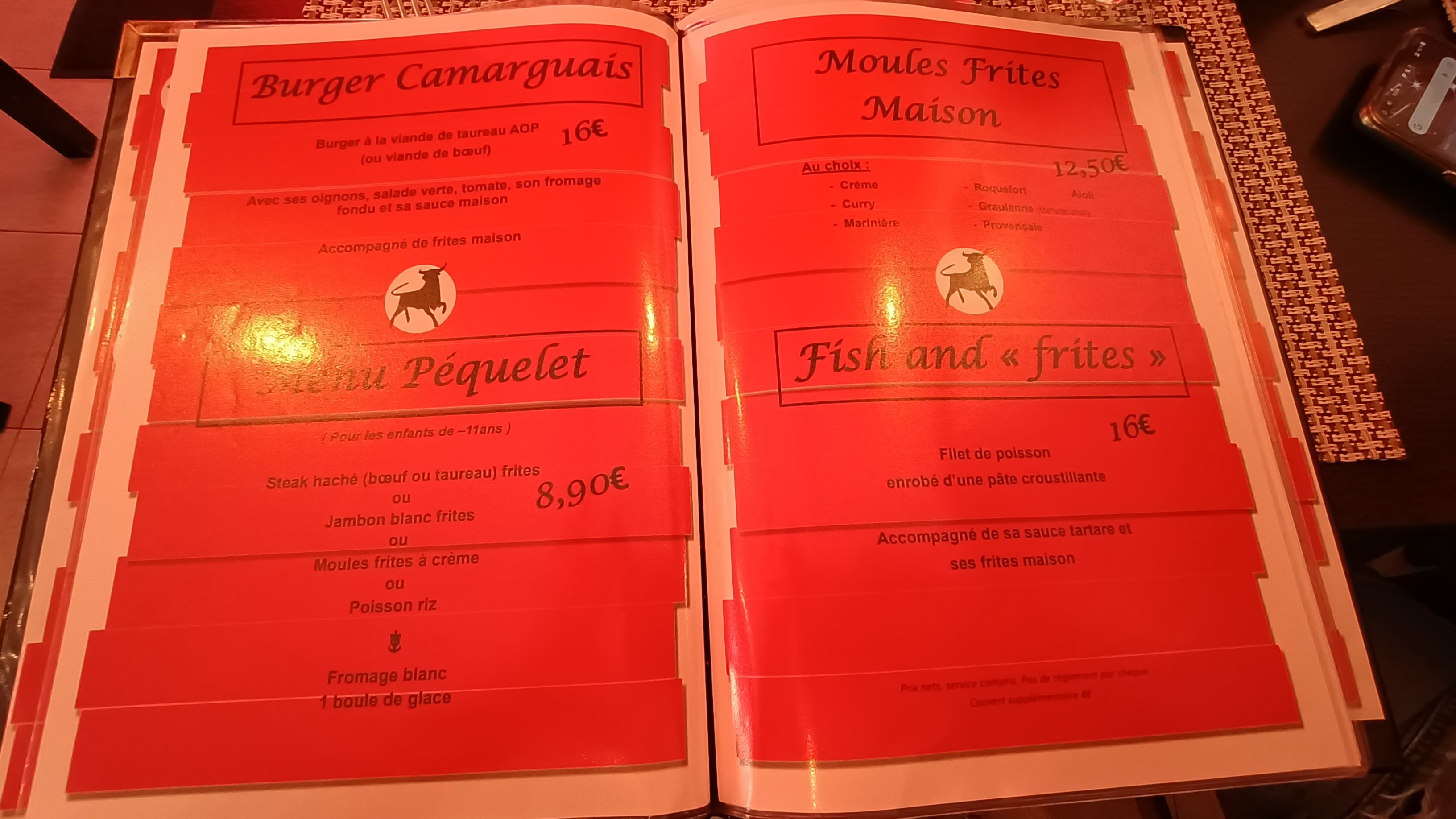 Un véritable régal. Nous y sommes aller avec nos trois enfants de 9/7/3 ans. Tout le monde à fini son assiette. Le steak de taureau est présenté en forme de taureau ce qui est vraiment simpa pour les enfants. Les moules aïoli et la gardianne sont vraiment de bonne qualités. Les tarifs ne sont pas excessif par rapport à la qualité des produits. Nous recommandons à 100%