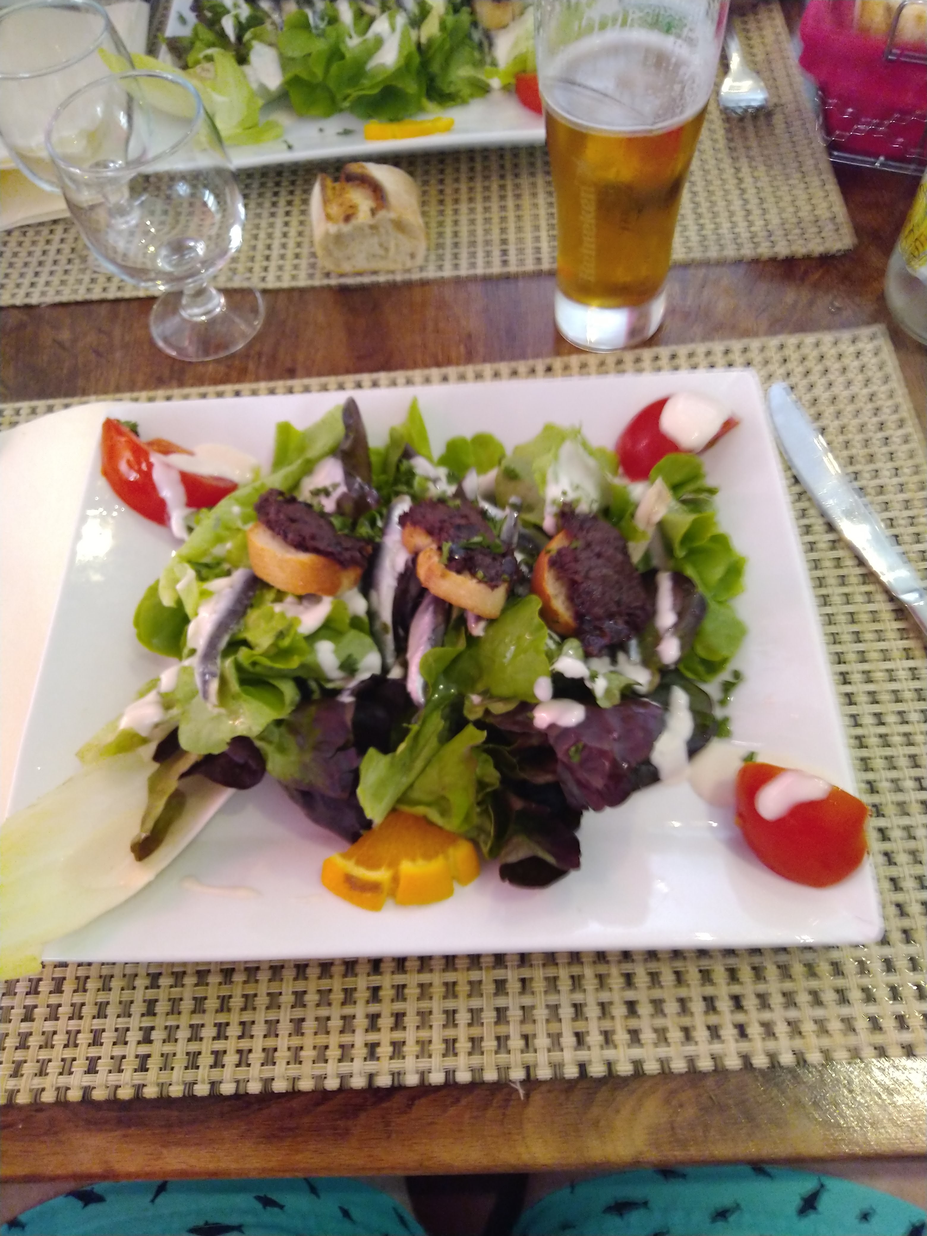 Vraiment pas bon les croutons sont une biscottes concassé le gésier de super marché sous vide (ca se voit) et quand la serveuse demande vous n avez pas aimé et qu on lui dit non elle se permet de pester et de dire « n importe quoi » Franchement je ne recommande pas du tout ce n etait vraiment pas bon pour le prix mais bon la maivaise fois de la serveuse est incroyable