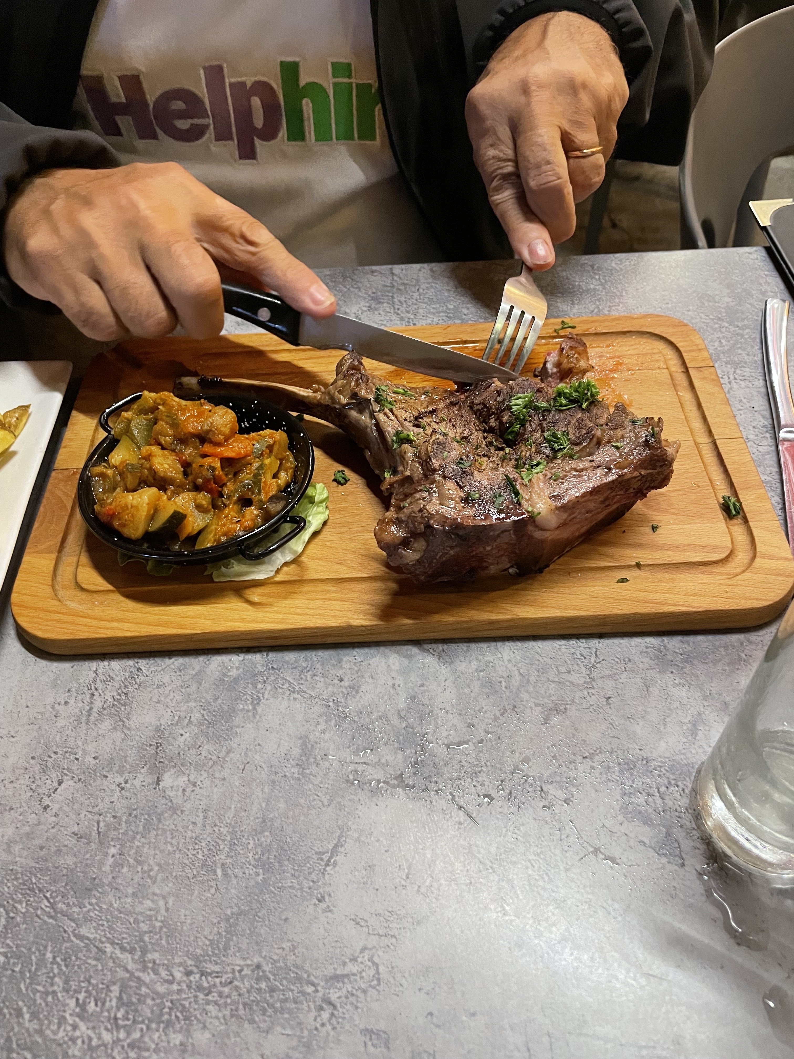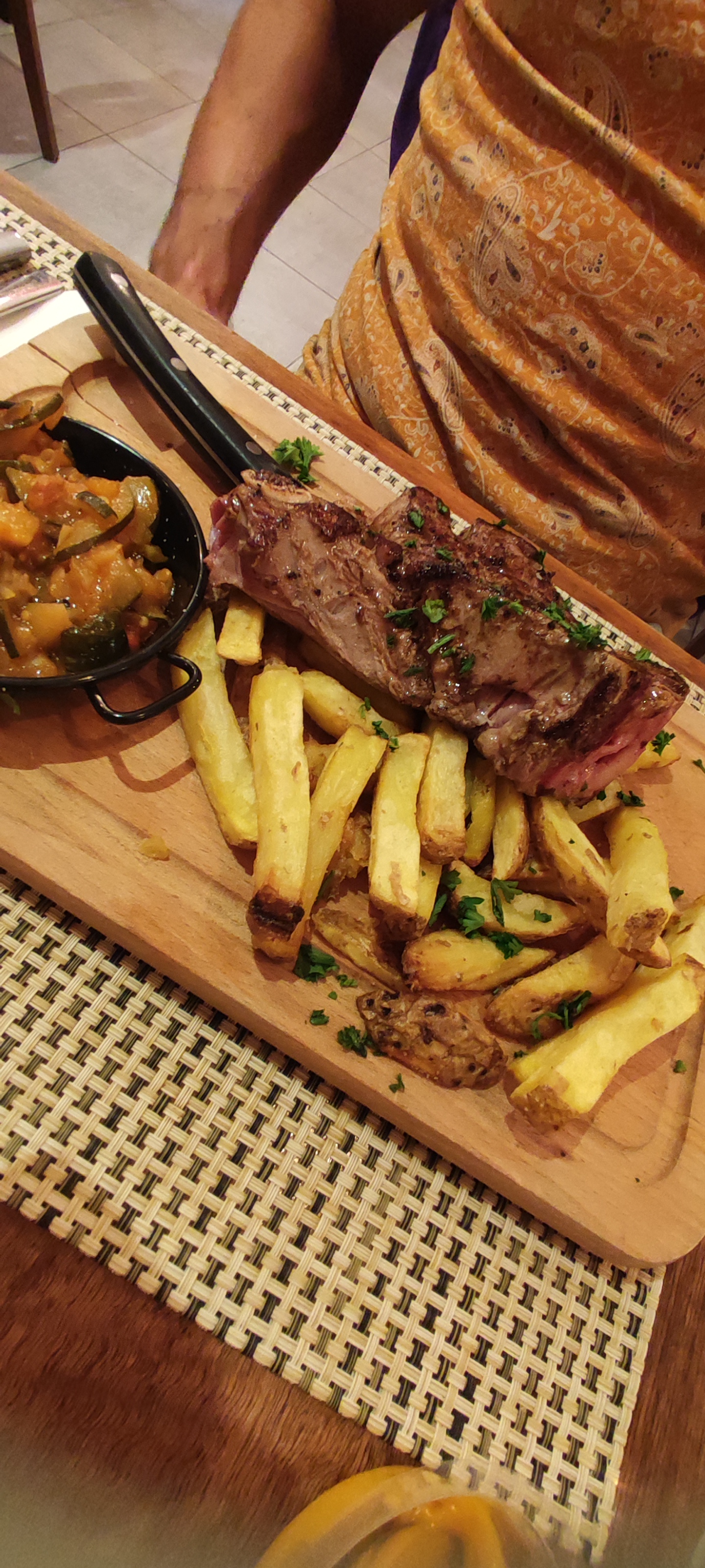 Dommage, je pensais passer un grand moment en dégustant un tomahawk de taureau de 500g. Pour une cinquantaine d’euros dans une pièce de viande, on s’attend à avoir du bon. Malheureusement, je suis resté déçu, la qualité de la viande était aussi approximative que sa cuisson. D’ailleurs, ce problème de cuisson concernait l’ensemble de notre table de 4, sous cuisson du saignant au trop cuit pour le à point. Le couteau bien aiguisé n’était pas superflu pour découper la pièce de taureau. Déception donc pour cette fois-ci.