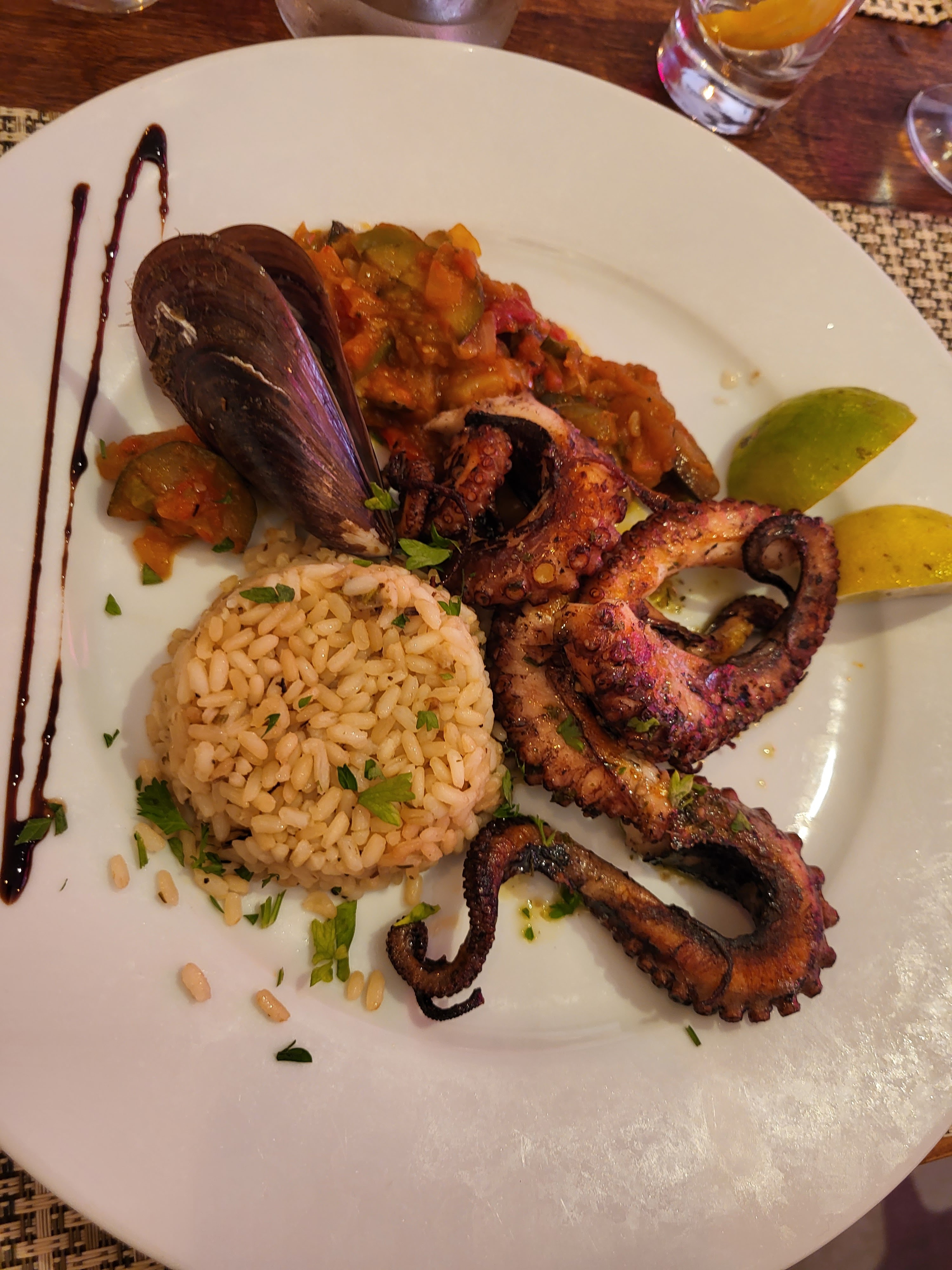 Nous avons été très bien accueilli, serveuse très agréable. Les moules sauce graulane sont très bonnes et copieuses et le poulpe à la plancha top! Le restaurant n est pas au bord du port mais dans une petite rue derrière. Bon rapport qualité-prix, il vaut le détour.