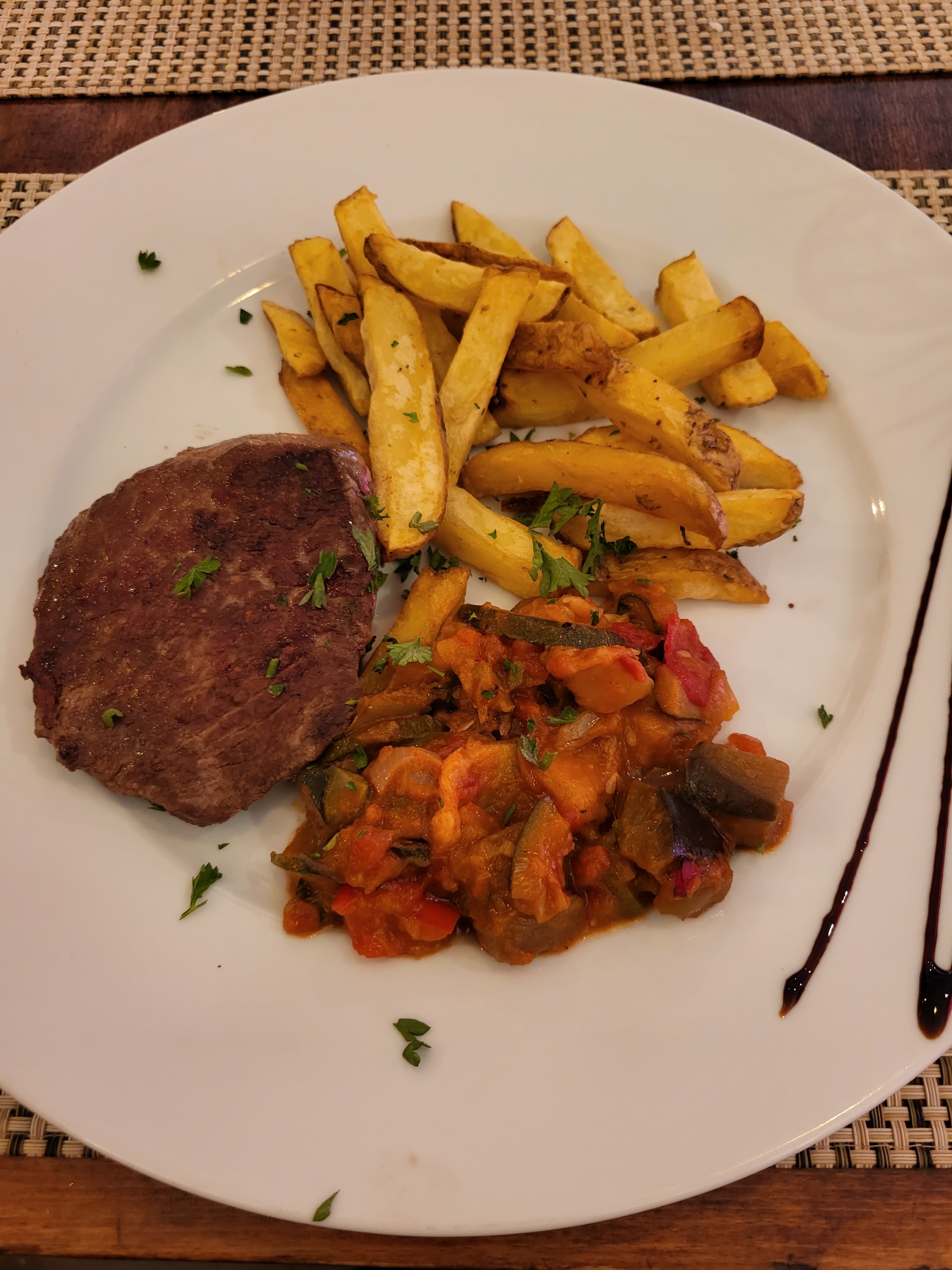 Petit pavé de taureau avec frites et ratatouille excellent 👍 Très bon accueil. Pour manger du taureau je recommande