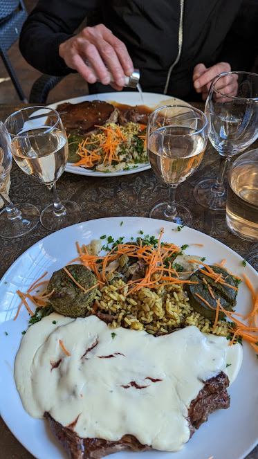 Nous avons déjeuné sur la terrasse à l'arrière du restaurant. Le carpaccio de boeuf bien servi et d'excellente qualité. Une énorme brochette d'agneau également excellente. Personnels sympathique.