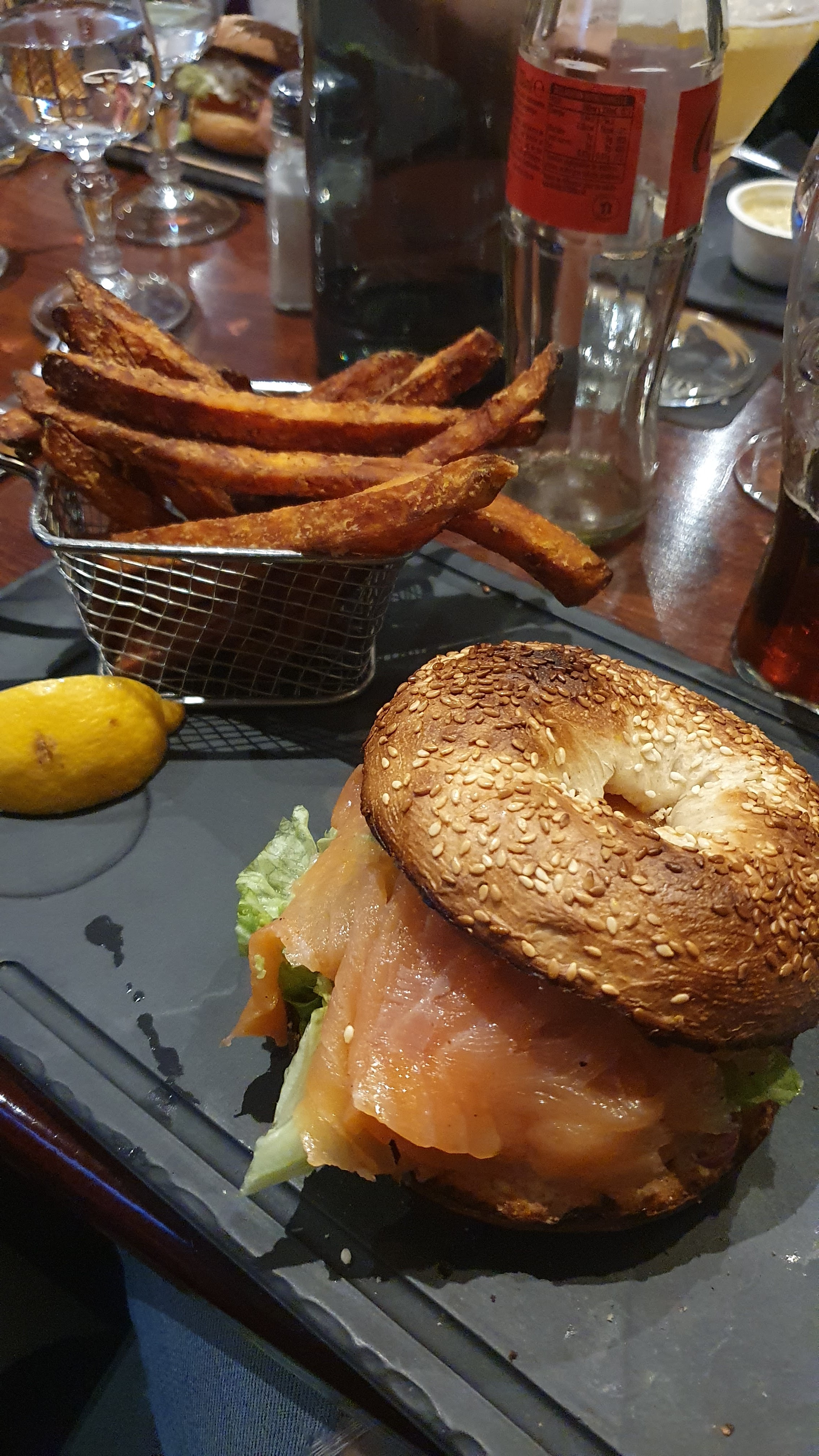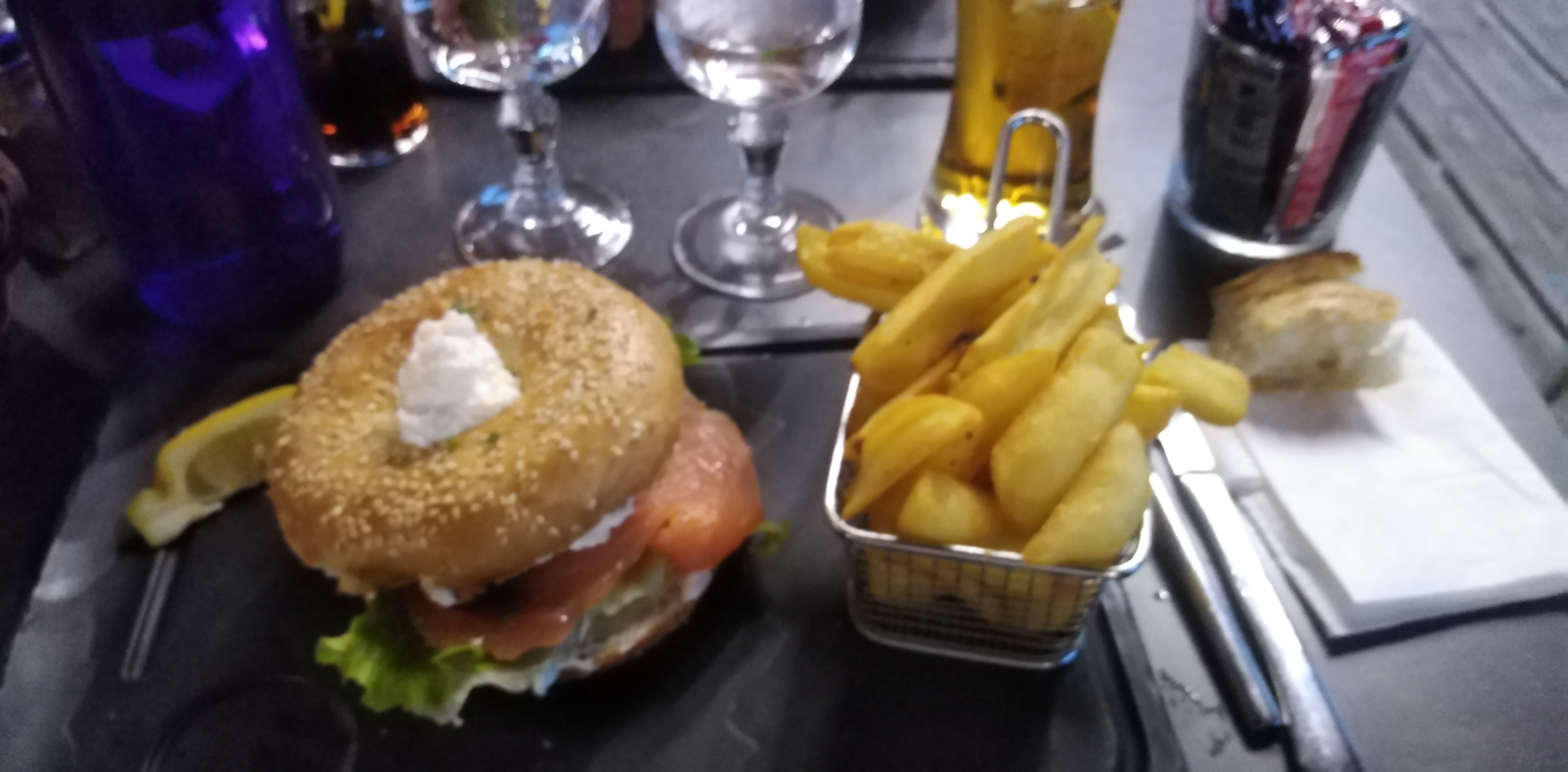J’ai pris un bagle veggie soit disant au fromage frais qui finalement était du fromage de chèvre. Dommage pour quelqu’un qui mange pas de fromage de chèvre. L’excuse du serveur « oui bah je connais pas la carte par cœur » un peu décevante, c’est ça qui justifie ma note d’ailleurs.. Très moyen dans l’ensemble mais on a passé une bonne soirée.