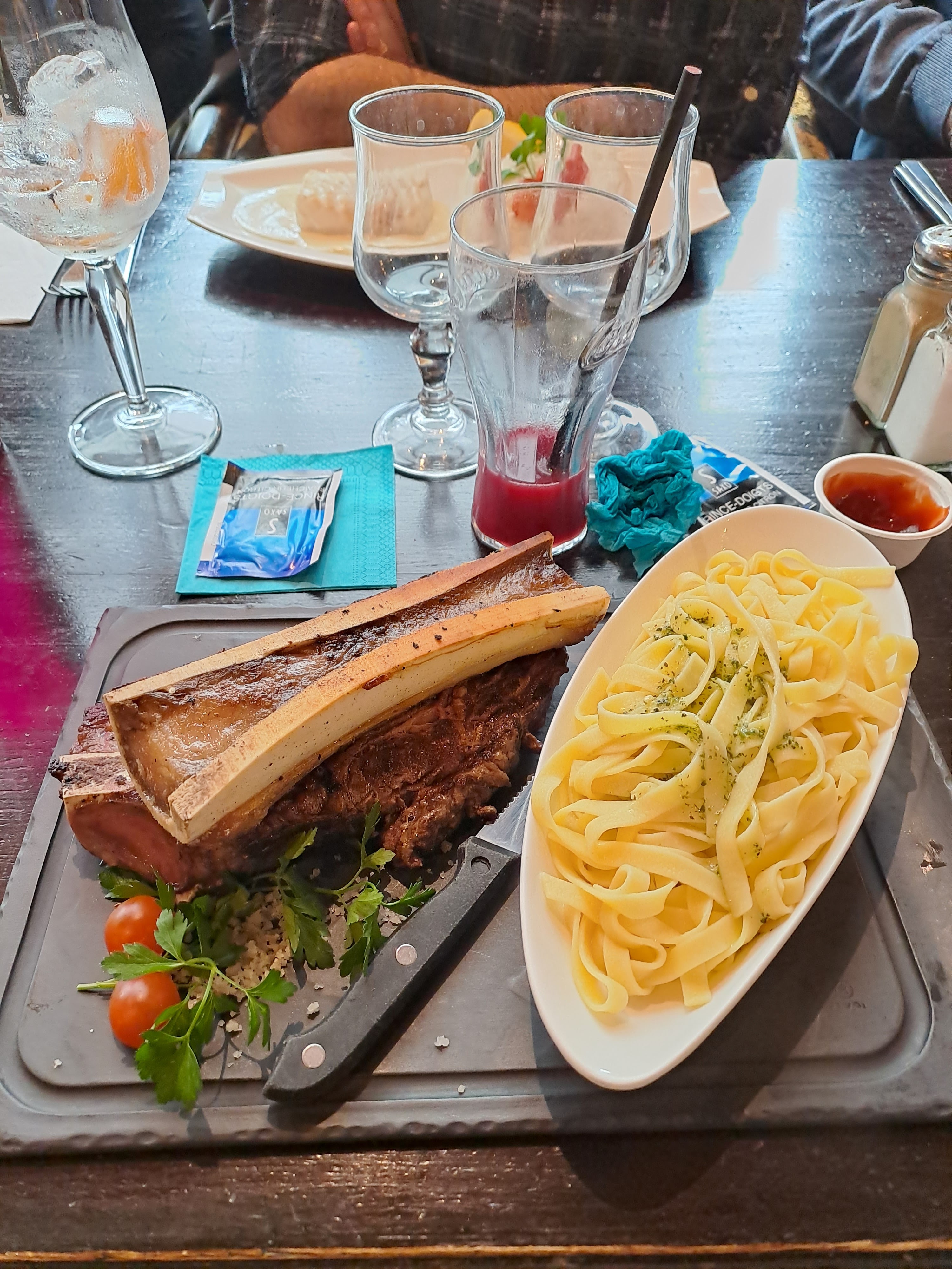 Personnel très sympathique et accueillant. Simplement dommage car mon entrecôte était très grasse (vraiment, plus de la moitié était du gras). Mon compagnon a prit un burger mais tellement grand que pas pratique à manger. Les frites étaient tièdes. Quand on l'a signalé à notre serveuse à la fin du repas, elle a dit pour l'entrecôte que ça arrivait et rien de plus. C'est dommage car nous sommes restés sur une note mitigée du coup. Merci tout de même pour l'accueil.