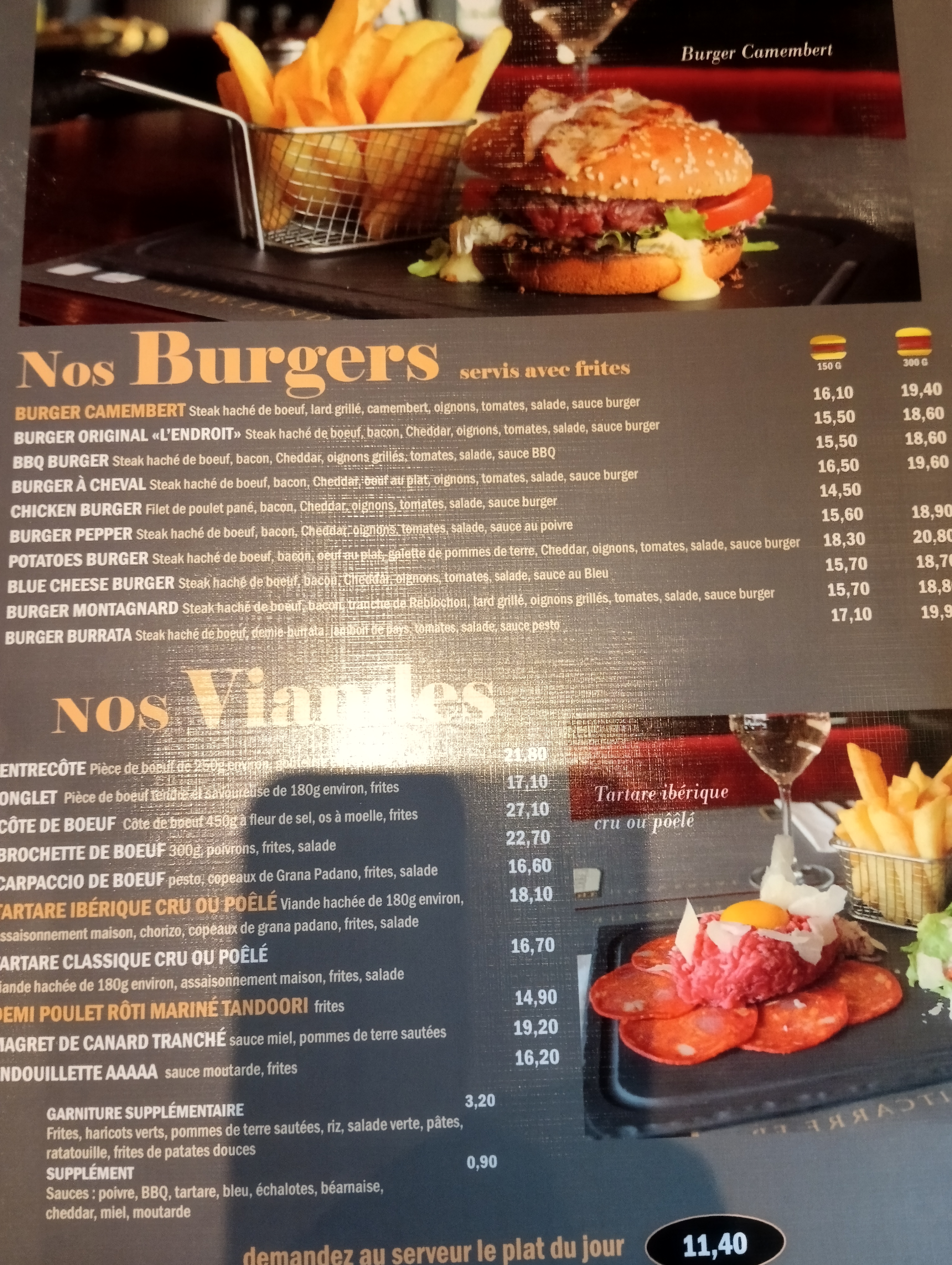 Cadre sympa et personnel sympathique. Tarifs corrects dans l'ensemble mais la cuisine n'est exceptionnelle, les burgers ne sont pas très copieux après certains plats on a encore faim. Réservation conseillée surtout l'hiver car lieu très fréquenté.