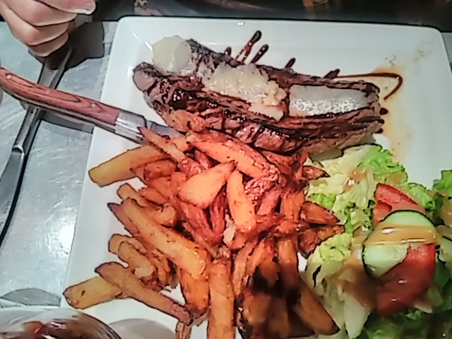 Personnel accueillant, lieu agréable et carte assez attrayante. Pour la St Valentin nous avons pris la bavette, qui était parfaite que se soit la cuisson et en goût. La viande était accompagné de frite fraîche maison et d'une salade verte. Un délice ! Par contre le dessert..... j'ai voulu essayé le duo fraisier/framboise. Même si ce n'est pas la saison des fruits rouges, j'avais envie de fruits, et sur la carte des desserts il n y en avait pas. Erreur .... mon desert était GLACÉ 🥶 il n'avait pas fini d'être décongelé ... Heureusement, naturellement il ne m'ont pas fait payer le dessert. Donc j'y retournerai 👍