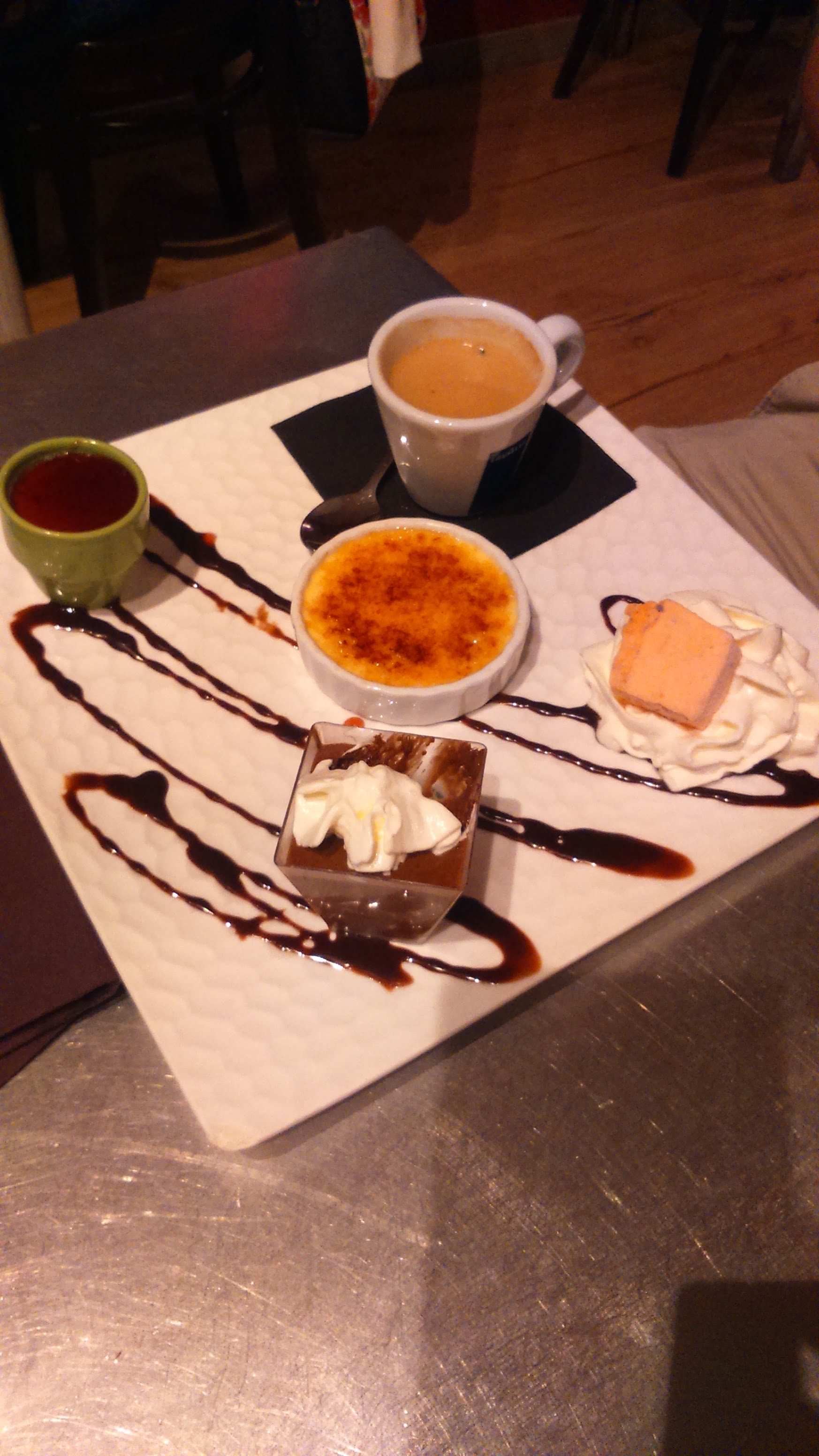 Super endroit très bonne ambiance et qualité des plats vraiment apprécier. Un petit commentaire quand même augmenté un peu la quantité pour les desserts ( mousse au chocolat) 😋 . Mais sinon je recommande.