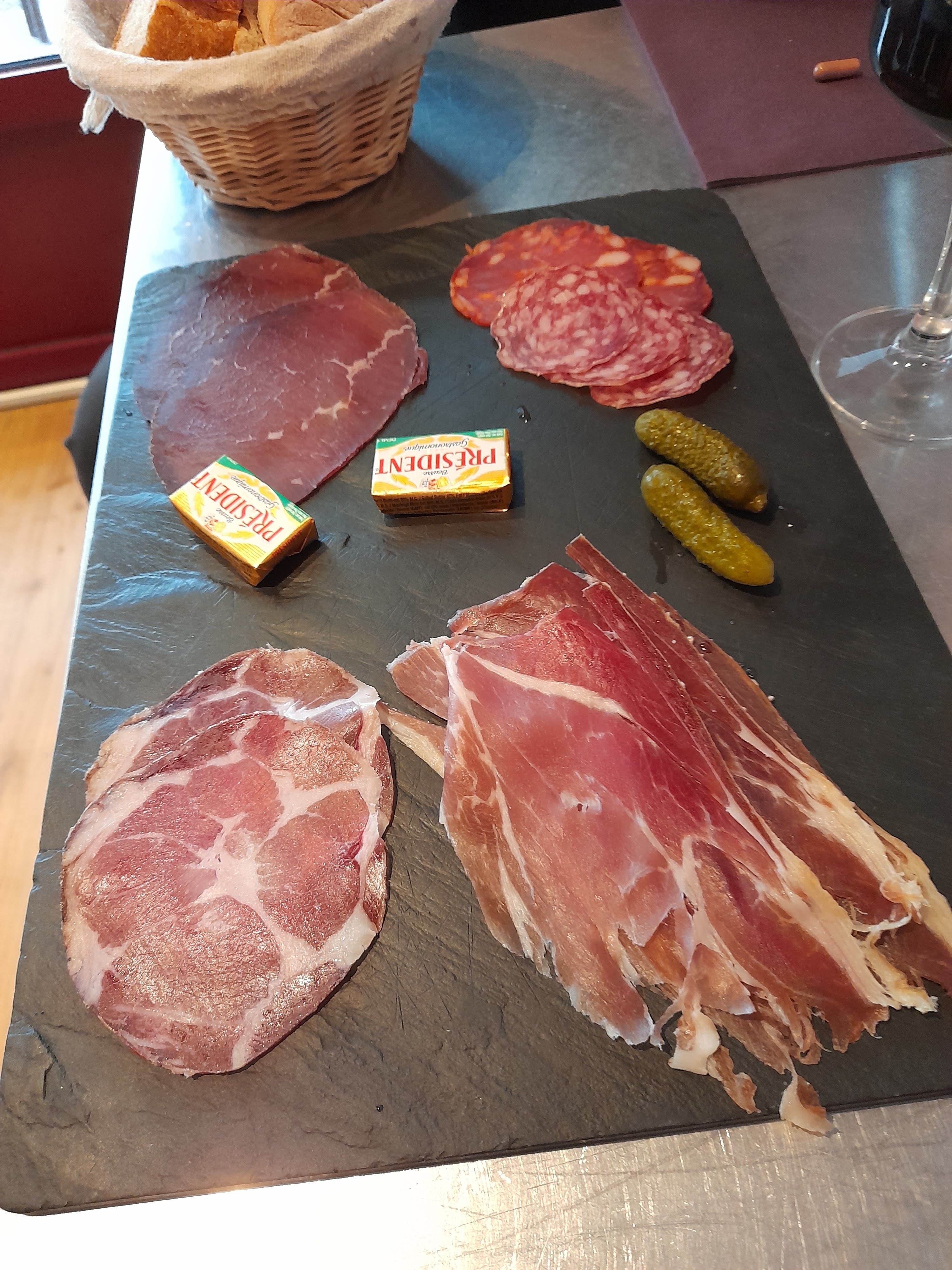 Un apéritif gourmet délicieux avec de vrais produits de qualité (la charcuterie et le fromage une tuerie) un sans faute avec service agréable A refaire pour le coté restaurant merci encore