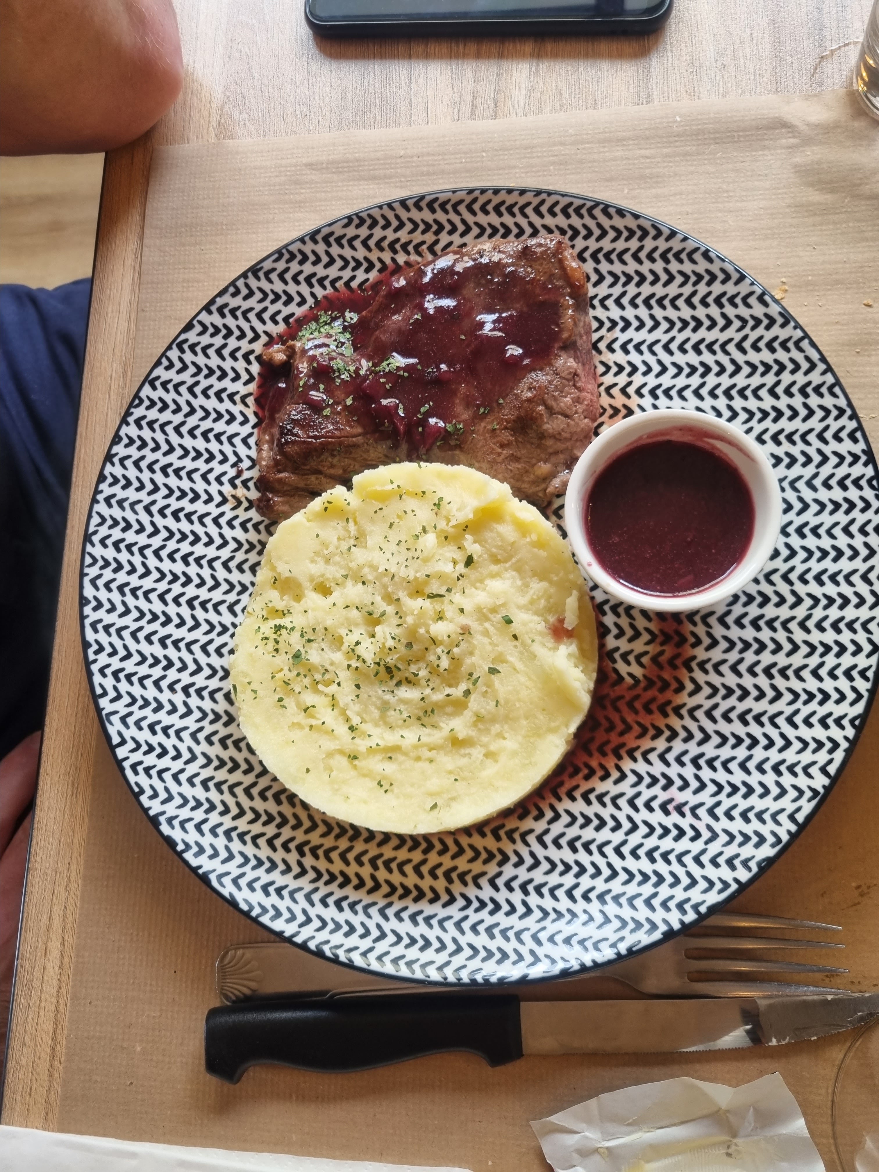 L'accueil est vraiment très agréable et la cuisine parfaite ! J'ai rarement mangé une viande aussi bonne ! Vraiment rien à redire. Ça vaut vraiment la peine de sortir de la voie expresse pour aller dîner là bas. Nous reviendrons avec grand plaisir 👍😊