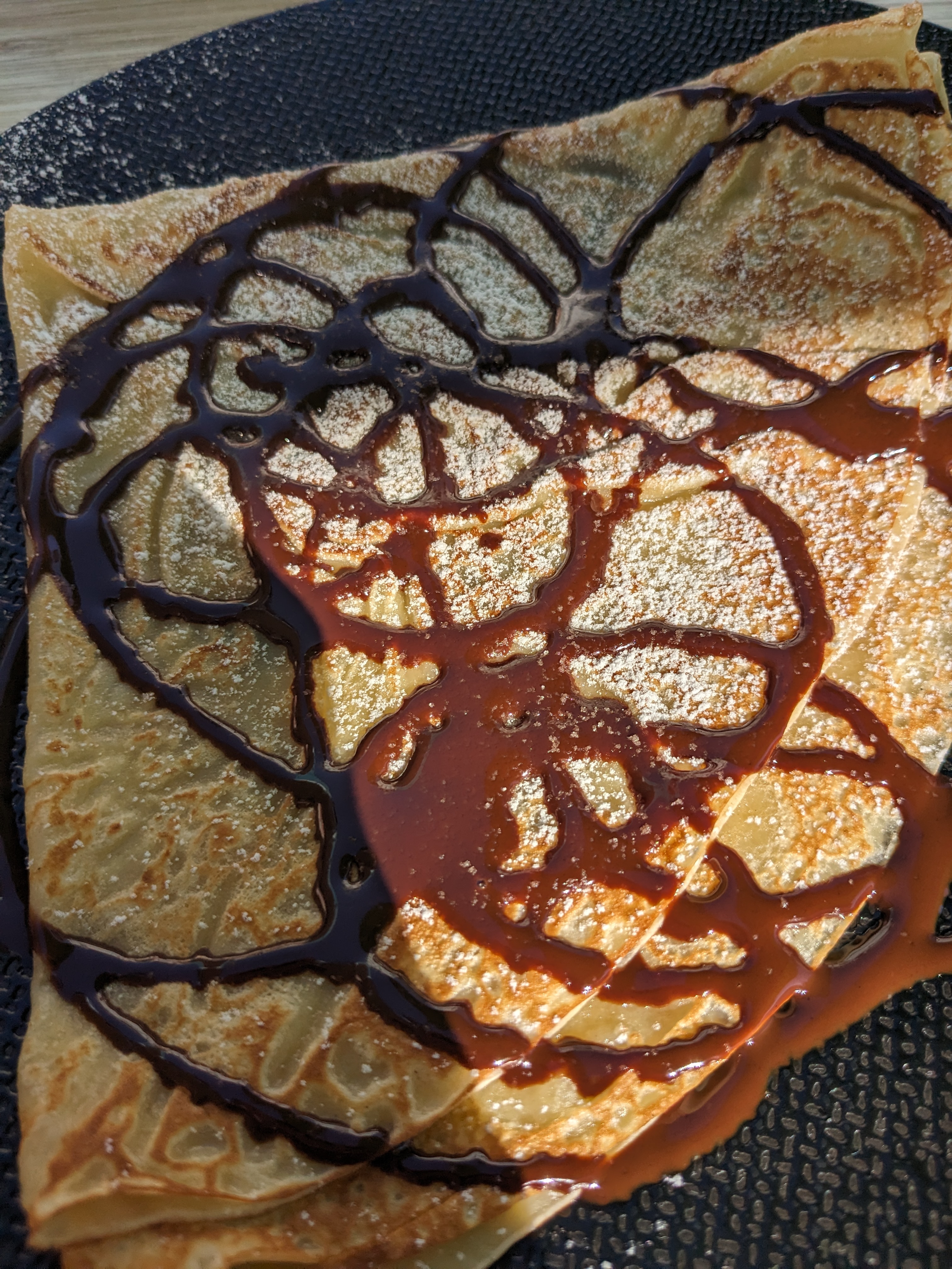 Ma femme et moi avons mangé chacun une crêpe sucrée. Elles étaient très bonnes.