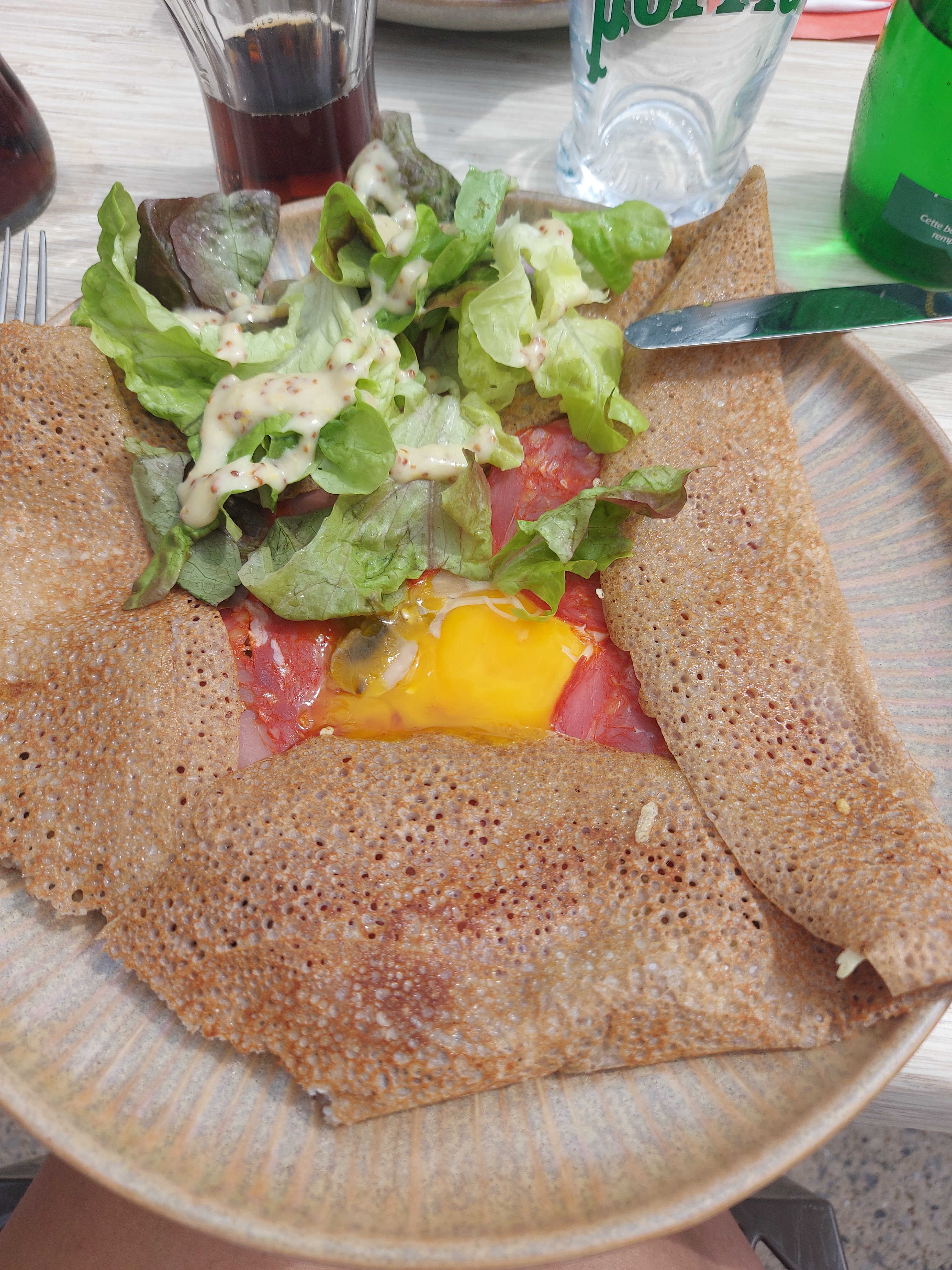 Nous sommes venus manger le dernier jour de notre séjour et la très bonne surprise nous avons mangé des galettes qui étaient excellentes et copieuse et des crêpes sucrées, une tuerie. Nous recommandons cet endroit sans problème ça étaient notre coup de coeur sur les cinq établissements où nous avons mangé. Et un service très agréable et convivial.