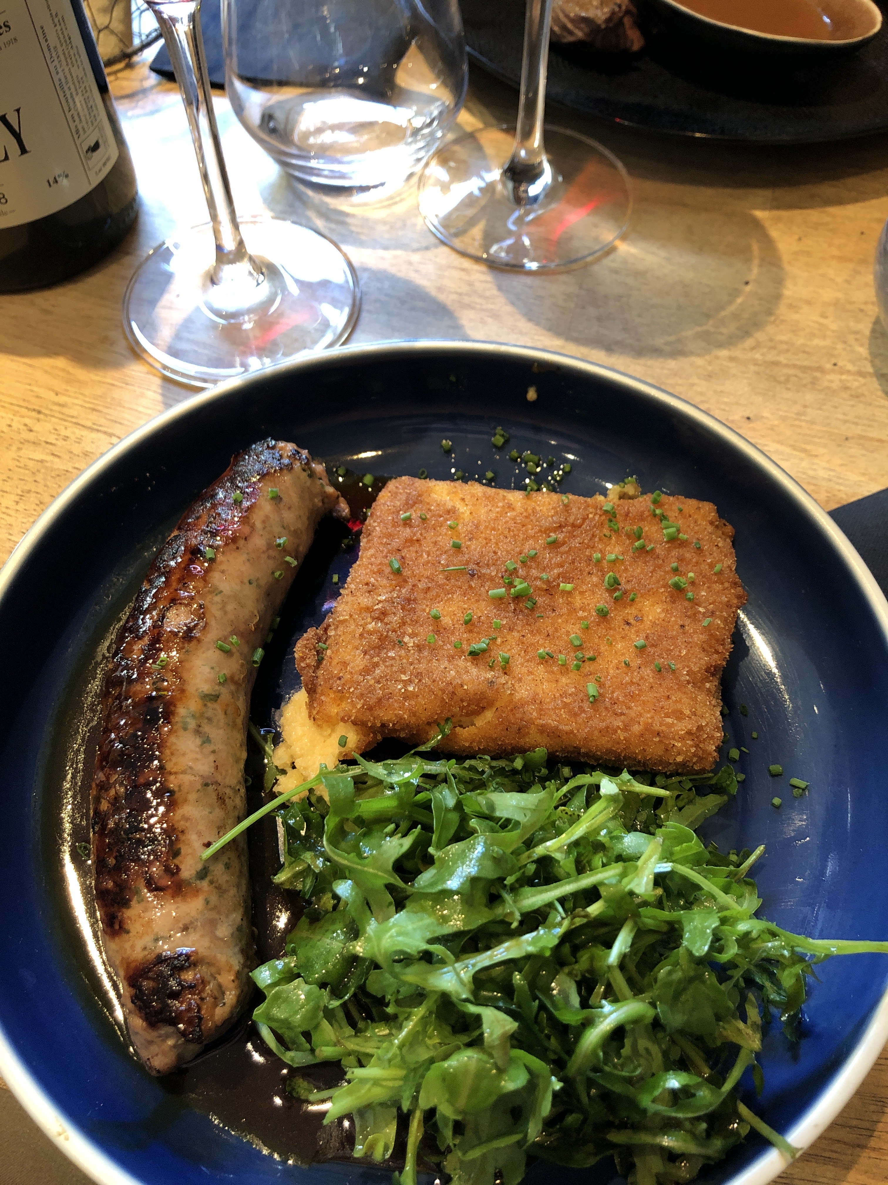 Bon service, très bon vins cote R bio très bonne surprise , assiettes froides, noix E très tendre, tatin poires pas terrible très sucré pas le goût poire pâte pas cuite, le chef absent . A refaire.