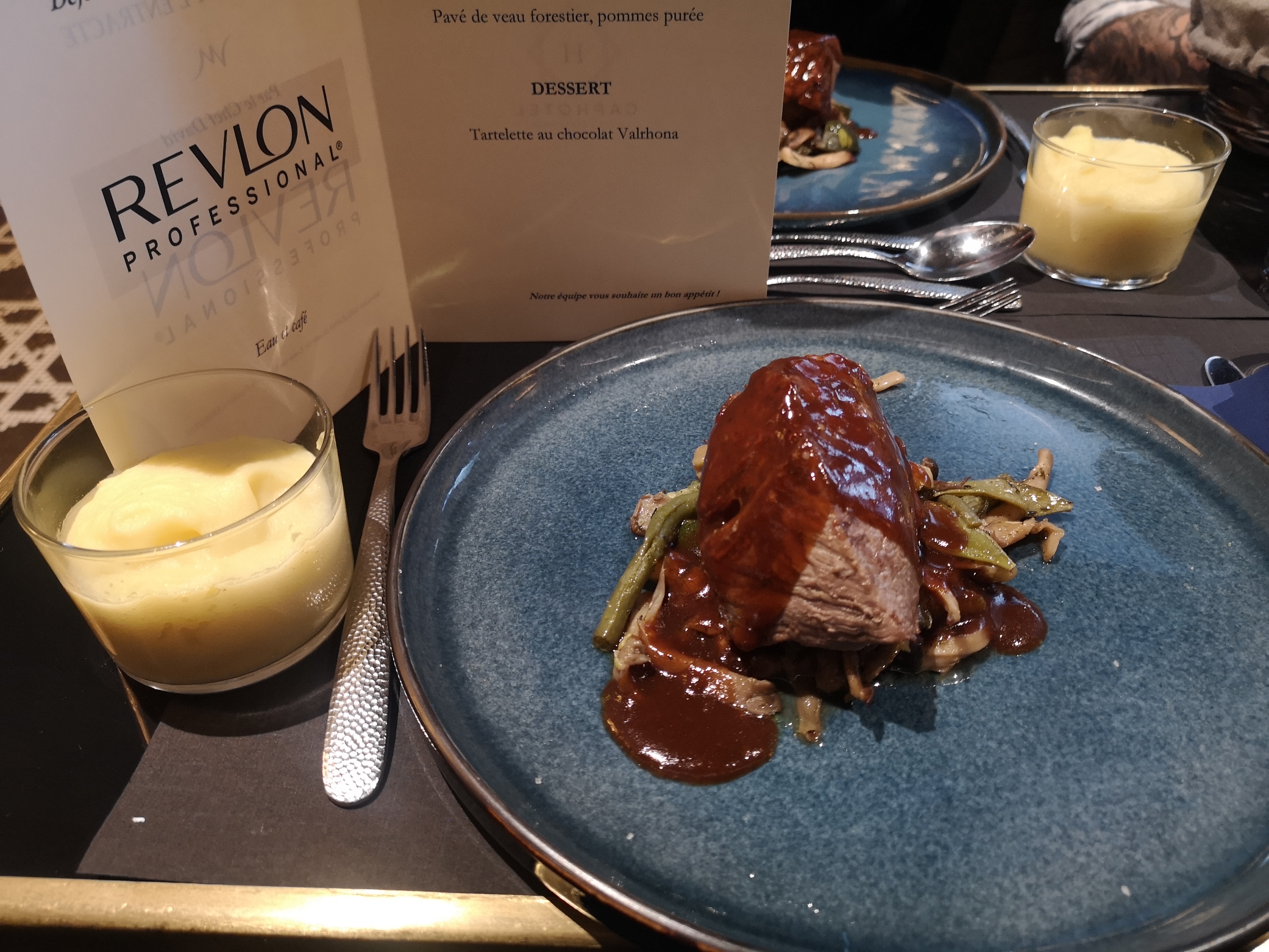 Repas pendant formation Le cadre est très cool Les serveurs très sympathiques Pour ce qui est du repas c'était choisi en amont par les formateurs je pense que je me serai dirigé vers autres chose . La c'était pavé de veau forestier j'aurai aimé un peu plus de sauce et de légumes et surtout une cuisson un peu plus poussé car la c'était très rouge quand je coupais la viande il y avait pas mal de sang donc manque de cuisson pour ma part. Les légumes et la sauce étaient très bon. Pour le dessert c'était une petit douceur :) Bonne expérience dommage 'pour la viande.