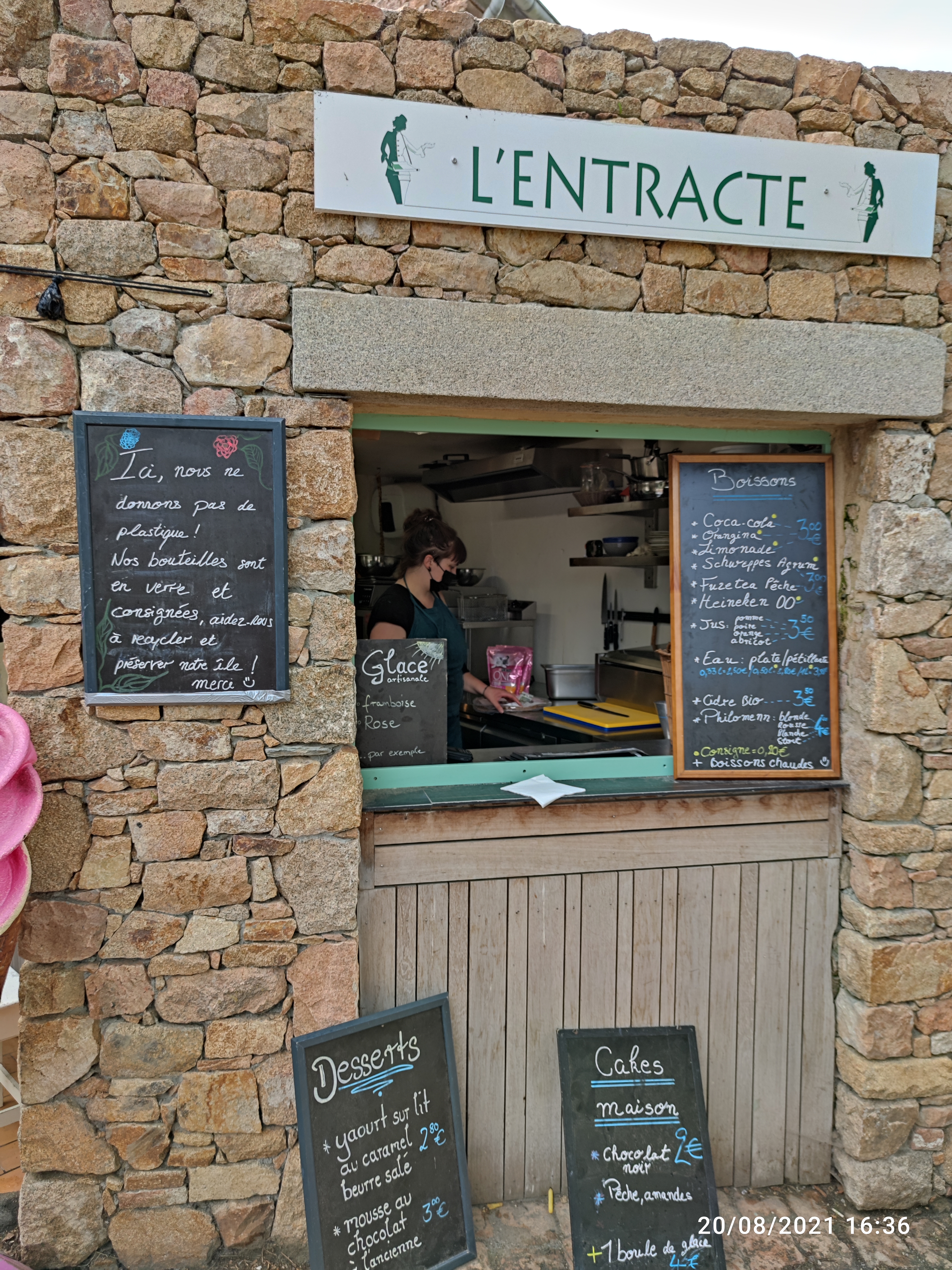 Après deux expériences de restaurants peu fructueuses (complet ou obligé de prendre un menu le midi), on s'est dirigé vers L'entracte. Les sandwichs étaient très bons, les frites aussi et la gérante très accueillante et aux petits soins :) Je recommande à tout ceux qui viennent découvrir l'île de Bréhat.
