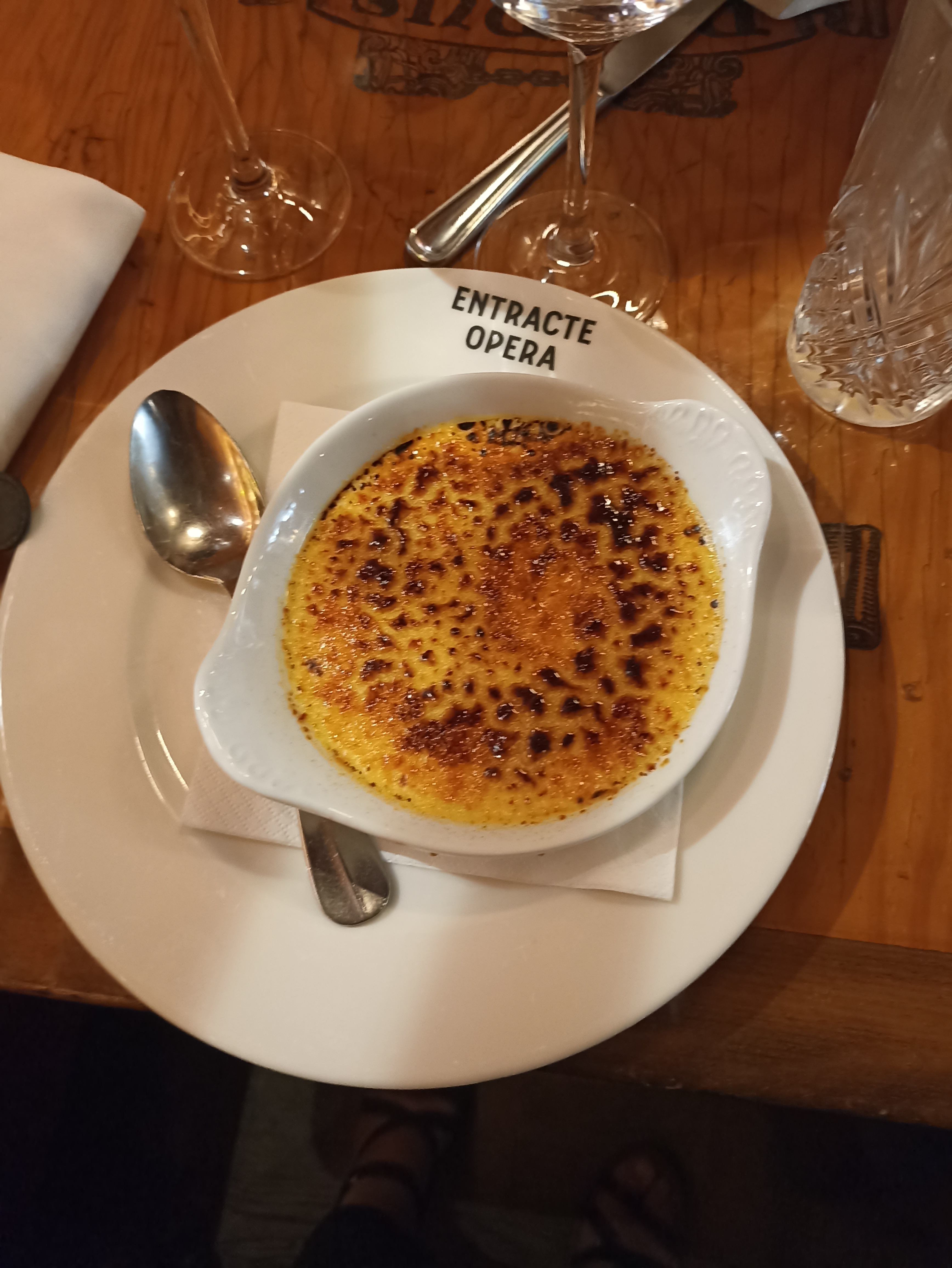 Cadre cosy avec belle vue sur l opera. J y suis allée le 31.12 après un superbe spectacle au théâtre. Mon enthousiasme est assez vite tombé du au menu spécial réveillon (alors qu à la réservation on nous avait informé qu il n y avait pas de menu spécial)qui était loin d être à la hauteur du prix et du service. Le serveur ne nous a pas demandé si l on désirait un café mais nous a apporté l addition aussitôt sans l avoir demandée. Serveur odieux avec des clients étrangers, jetait sur la table les menus et Trainait bruyamment les chaises. Mes amis habitués à venir à cette date étaient très déçus de m avoir emmenée et n y retourneront plus.