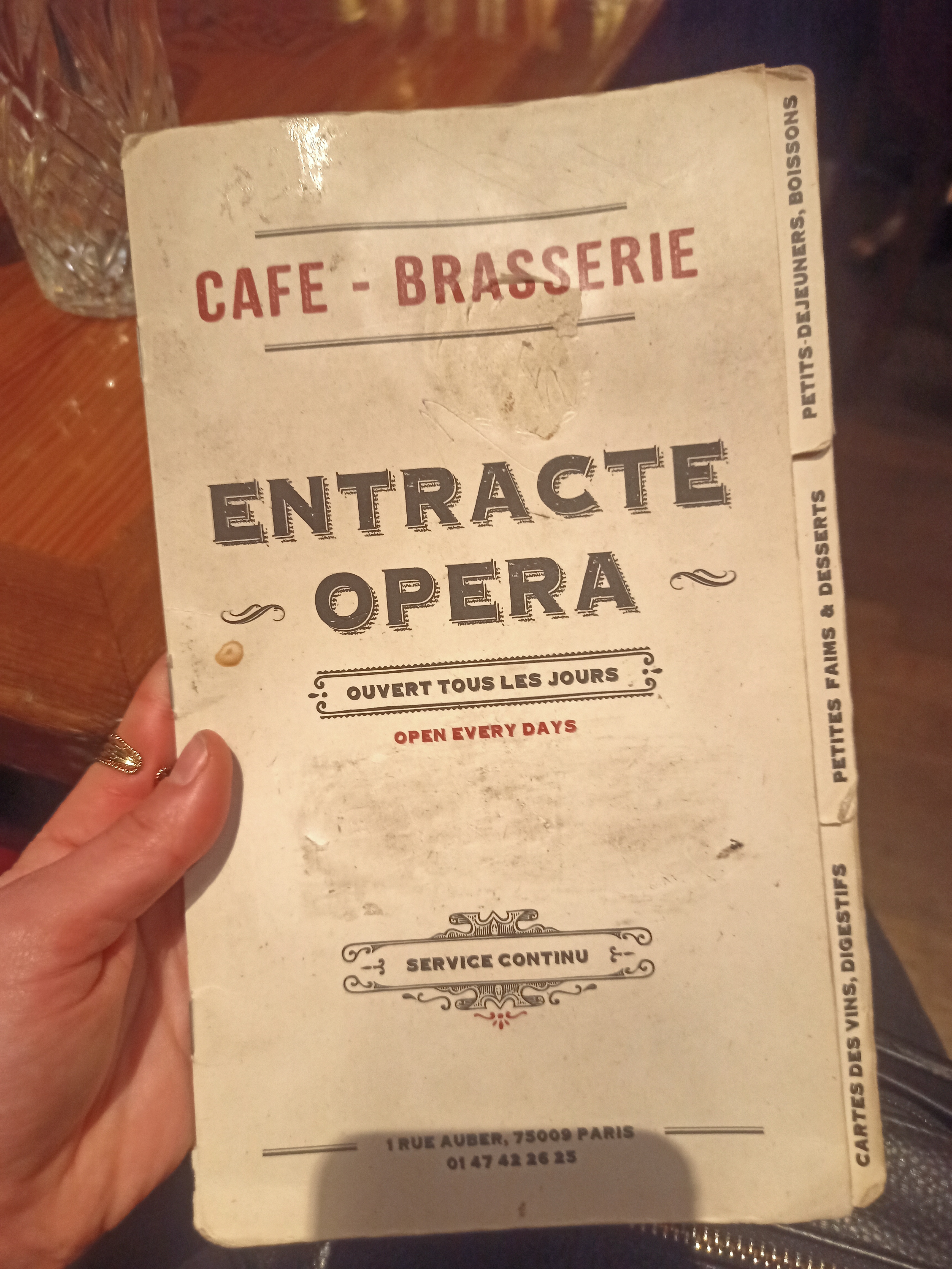Je vais régulièrement dans cette brasserie, que je connais depuis quelques. années. Service décontracté mais professionnel. Comme je suis connue, très bon accueil. Je conseille ce lieu situé en face de l'Opéra Garnier, belle splendeur pour les yeux.