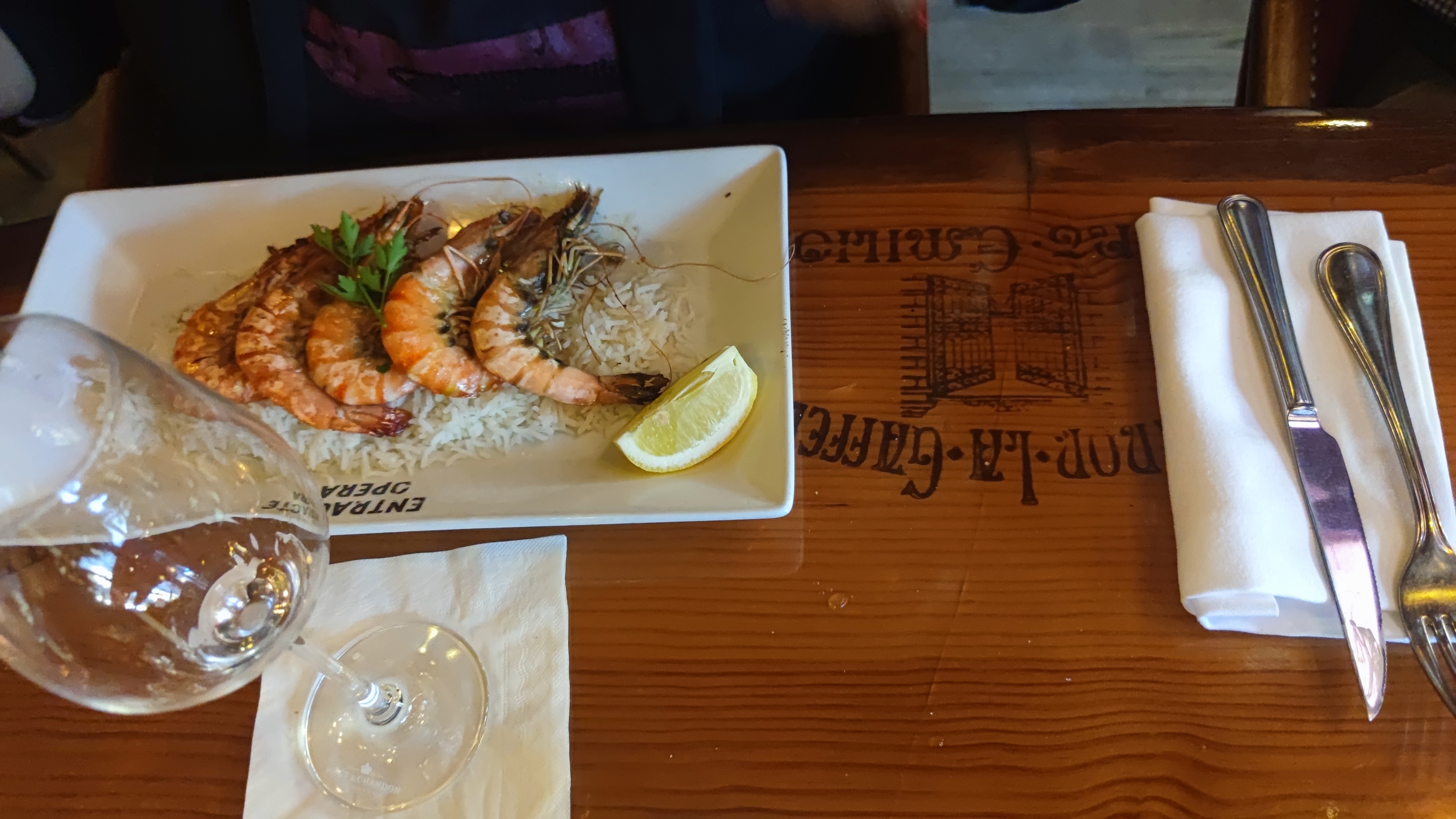 Nous avons choisi de manger un peu et nous étions entassés dans un coin. Je mesure 61' et il n'y avait pas assez d'espace pour les jambes et le serveur m'a bien vu en difficulté et s'est éloigné Nous avons commandé des gambas et un burger végétarien. Les crevettes une fois sorties de leur carapace étaient insipides. Le hamburger était bon mais il semblait tomber à plat compte tenu du prix. Dans l'ensemble...pas génial et trop cher.