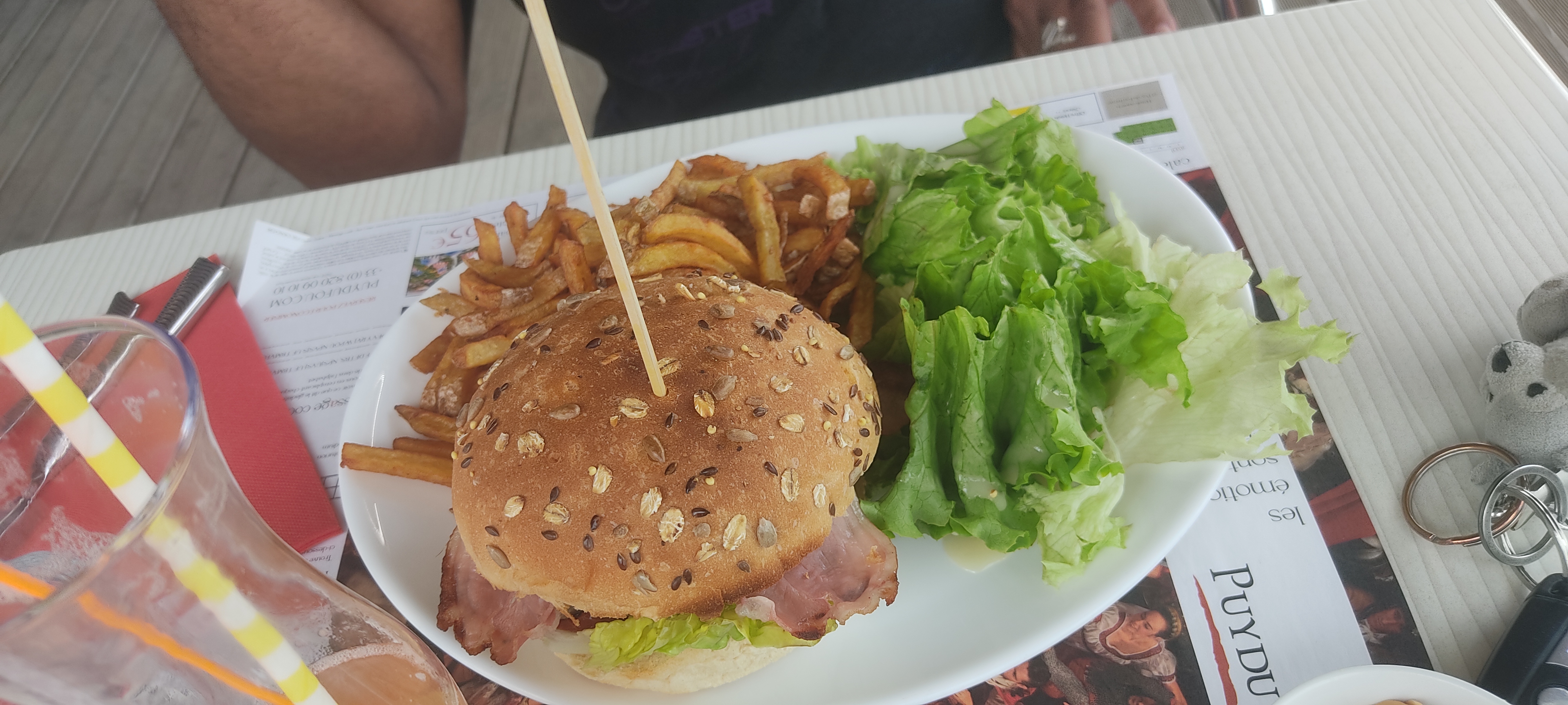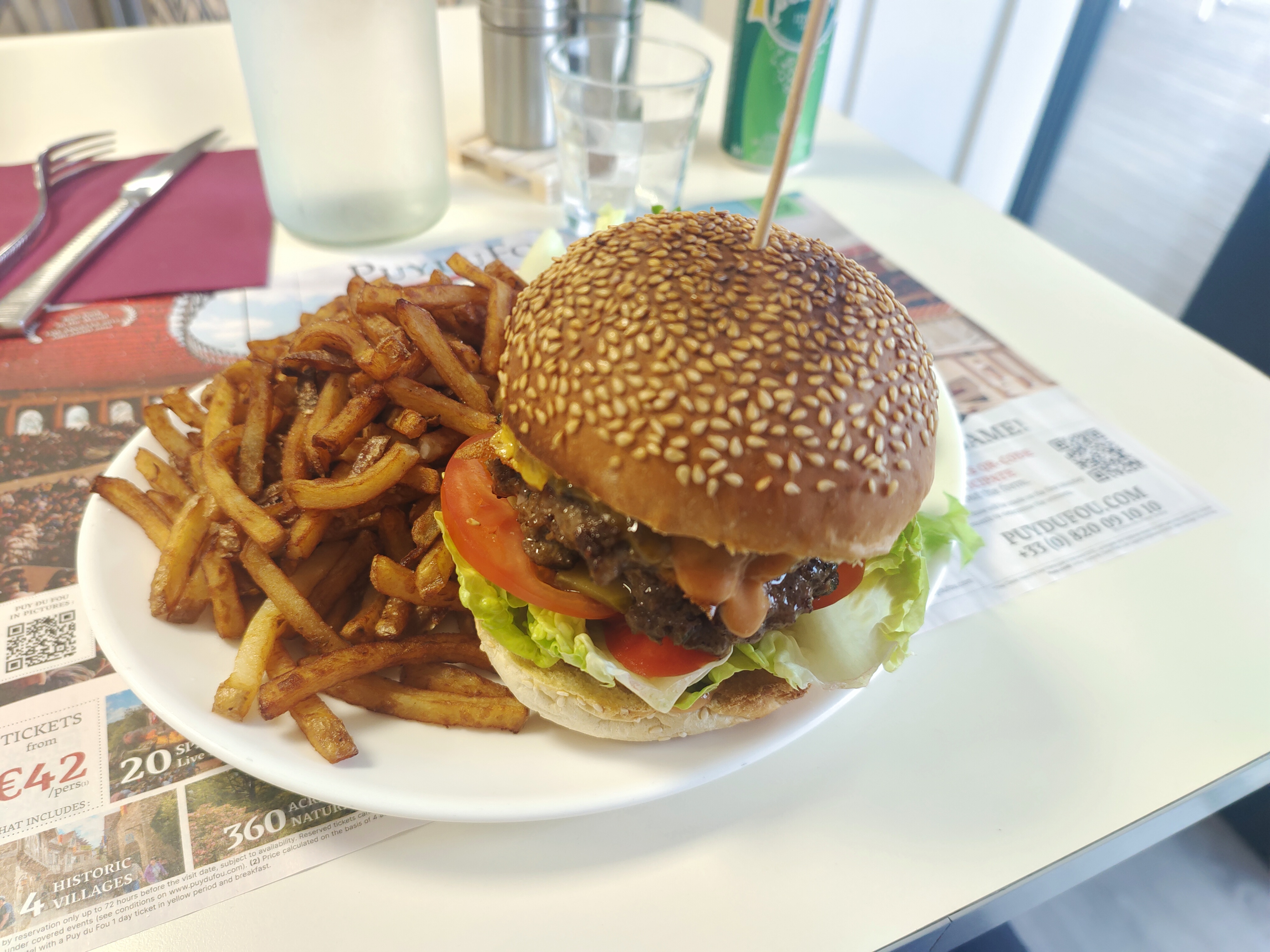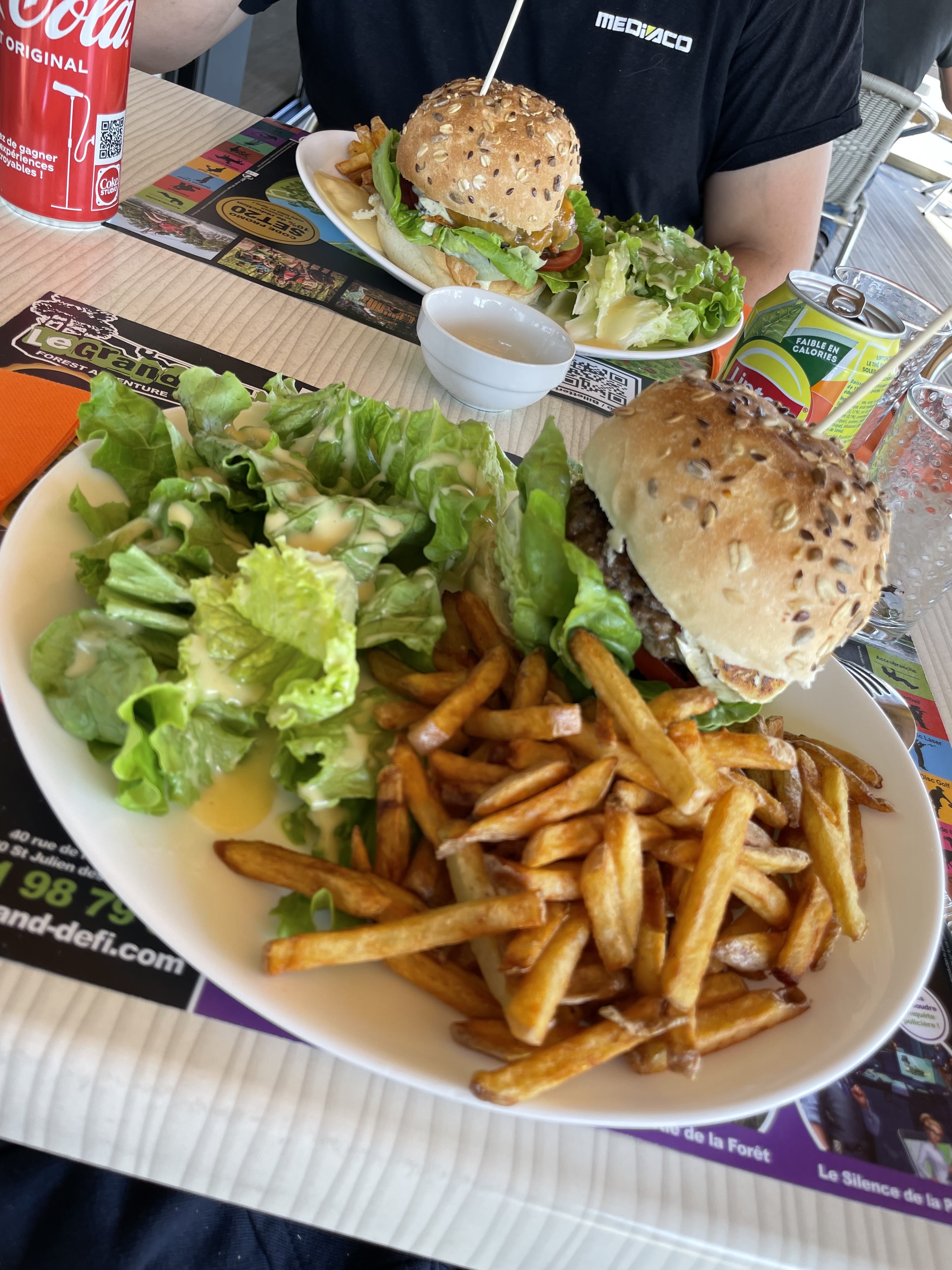 Un Super moment, la salade de ma femme était généreuse, idem pour l'assiette de frite en plus (je me serais cru dans le Nord tellement il y en avait), la viande de mon burger était cuite juste comme je l'ai demandé, si je repasse dans le coin j'y retournerais !