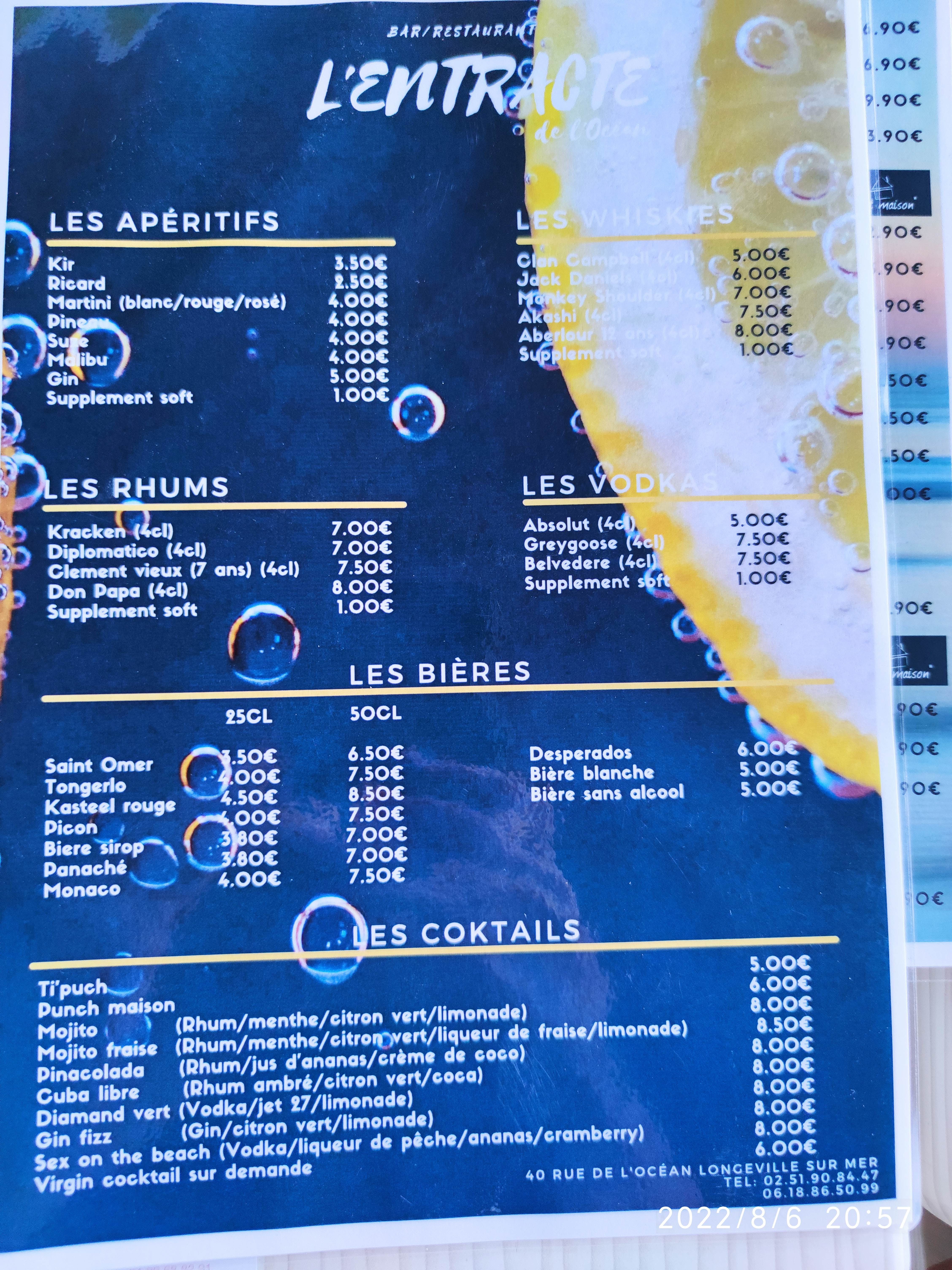 Nous sommes venus de Lille passer un week end à Longeville et nous sommes allés dîner à L'Entracte, tout était parfait , repas copieux, viandes très tendre , frites fraîches maison , le patron est très accueillant et sympa, de bon conseil pour les plats , nous recommandons vivement 🙂