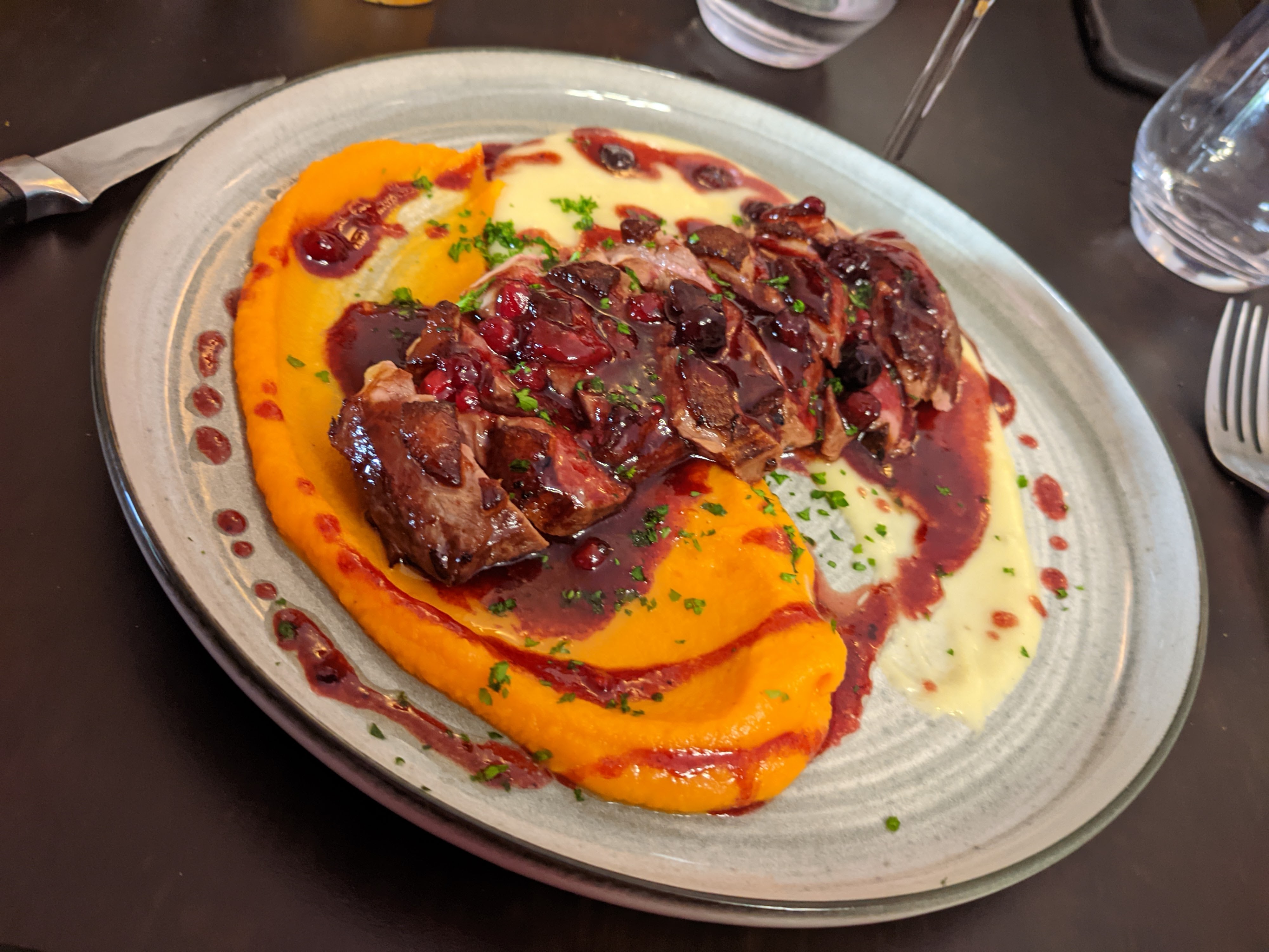 Nous avons passés un moment de dégustation incroyable dans un super lieux avec une déco soignées et chaleureux. Le repas était juste parfait tellement que j'ai dû prendre 2 entrées avec ce foie gras maison digne d'un restaurant étoilé! Cuisson des viandes parfaitement respecter. Merci pour ce bon moment.