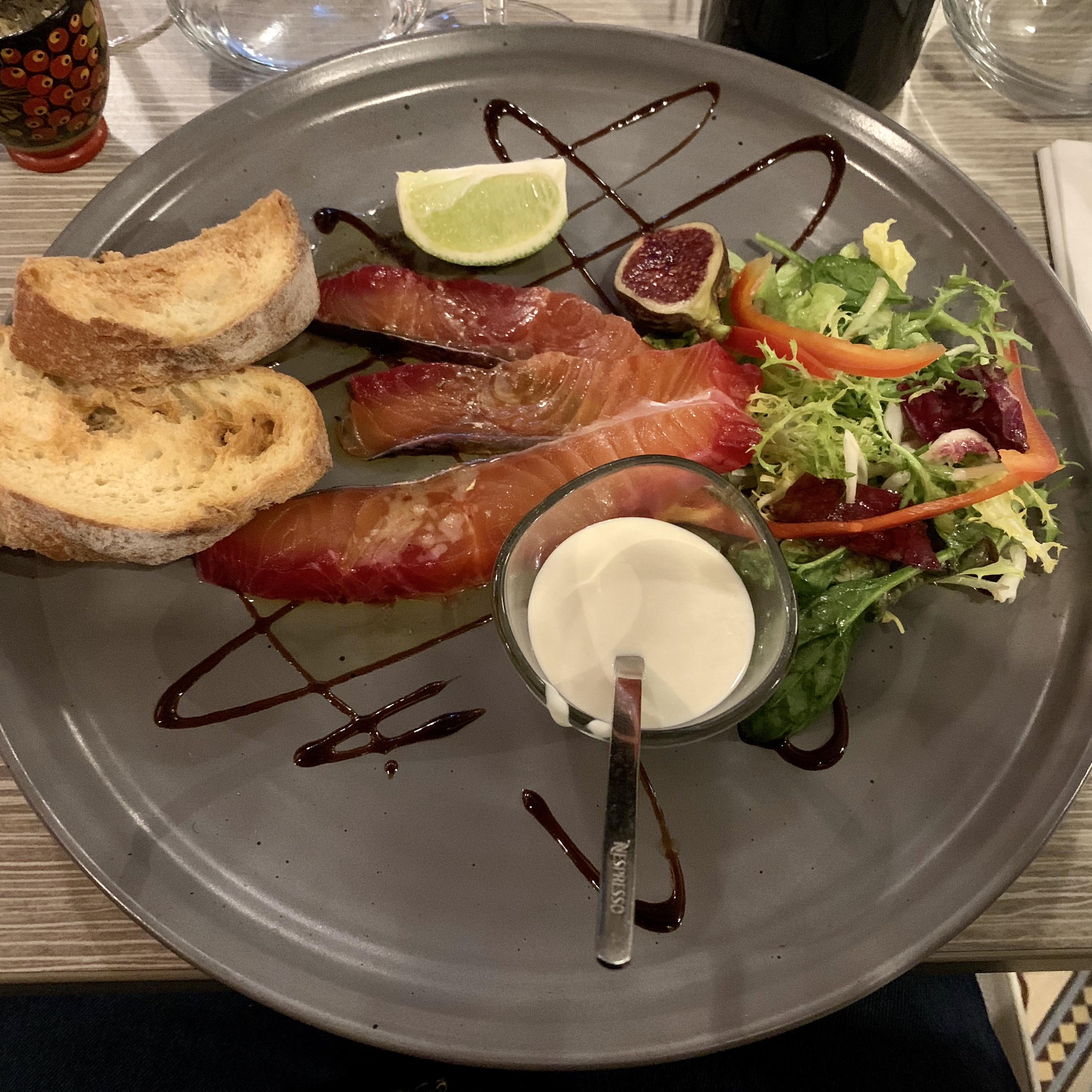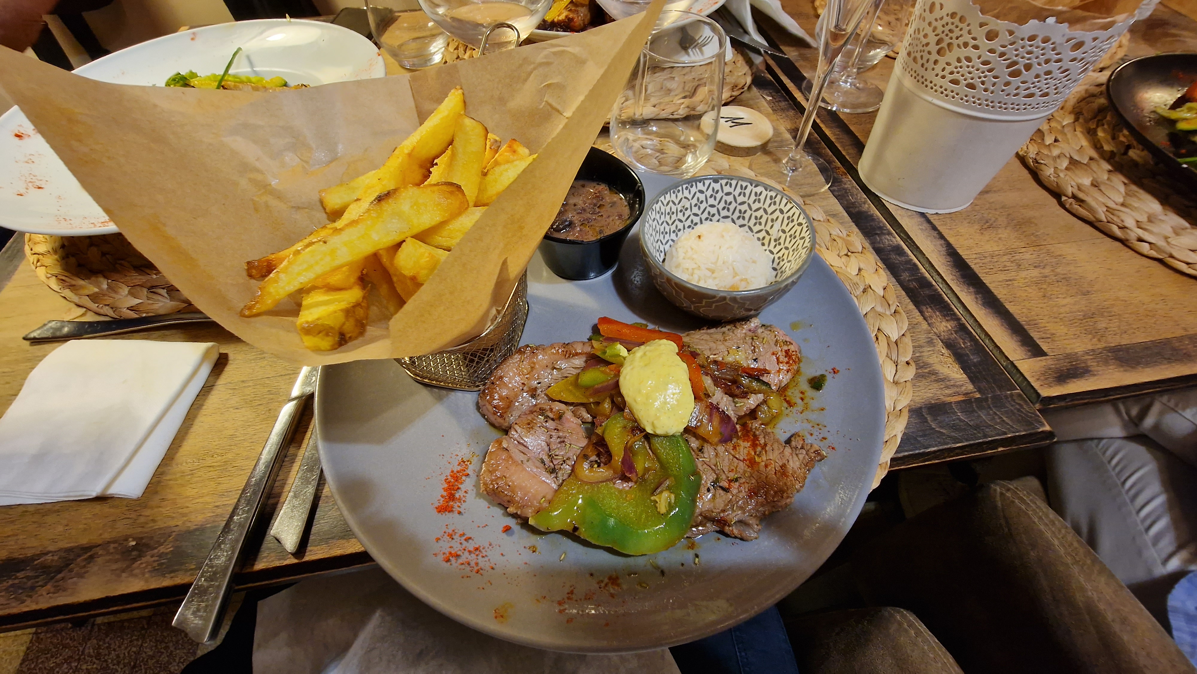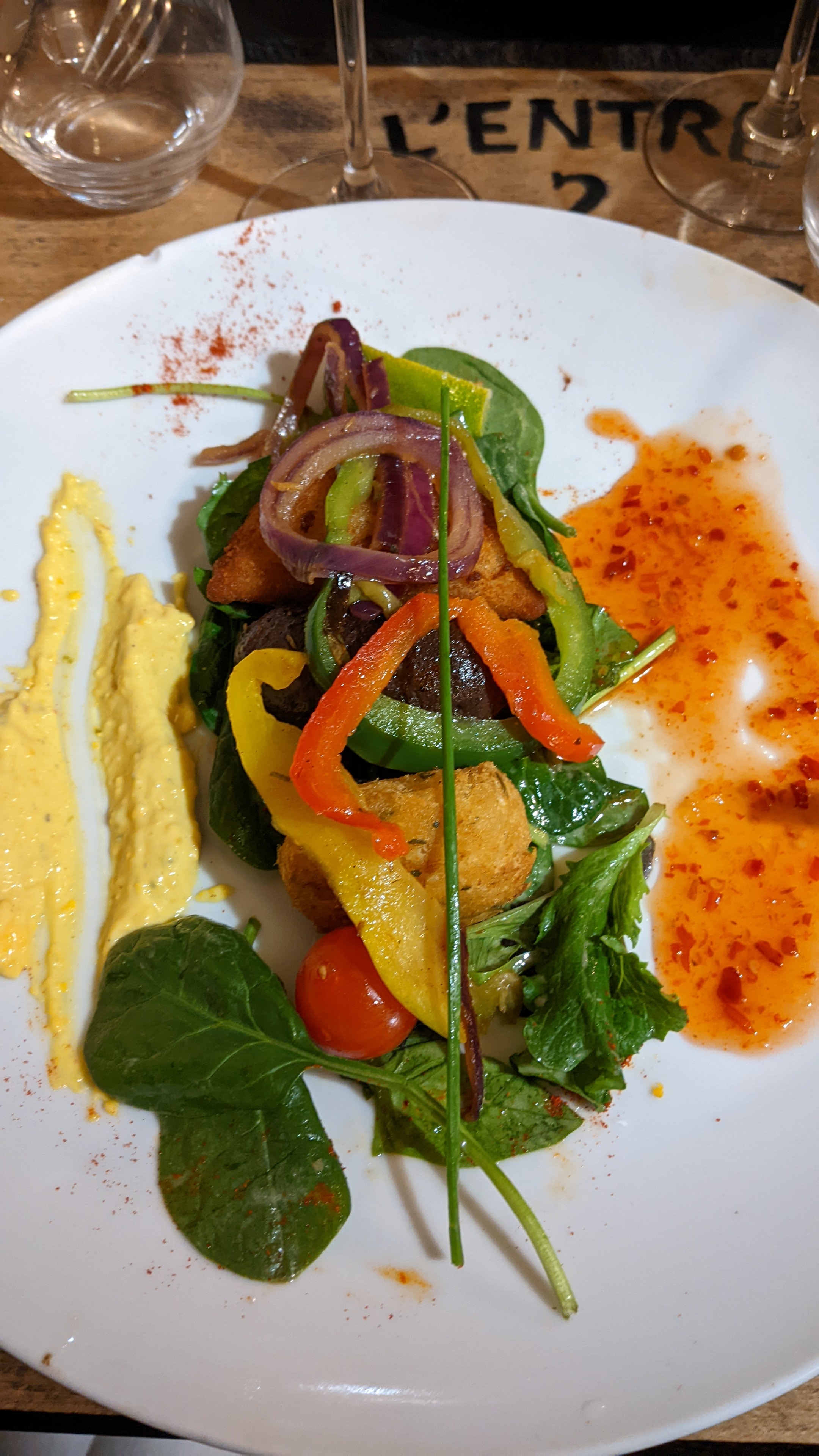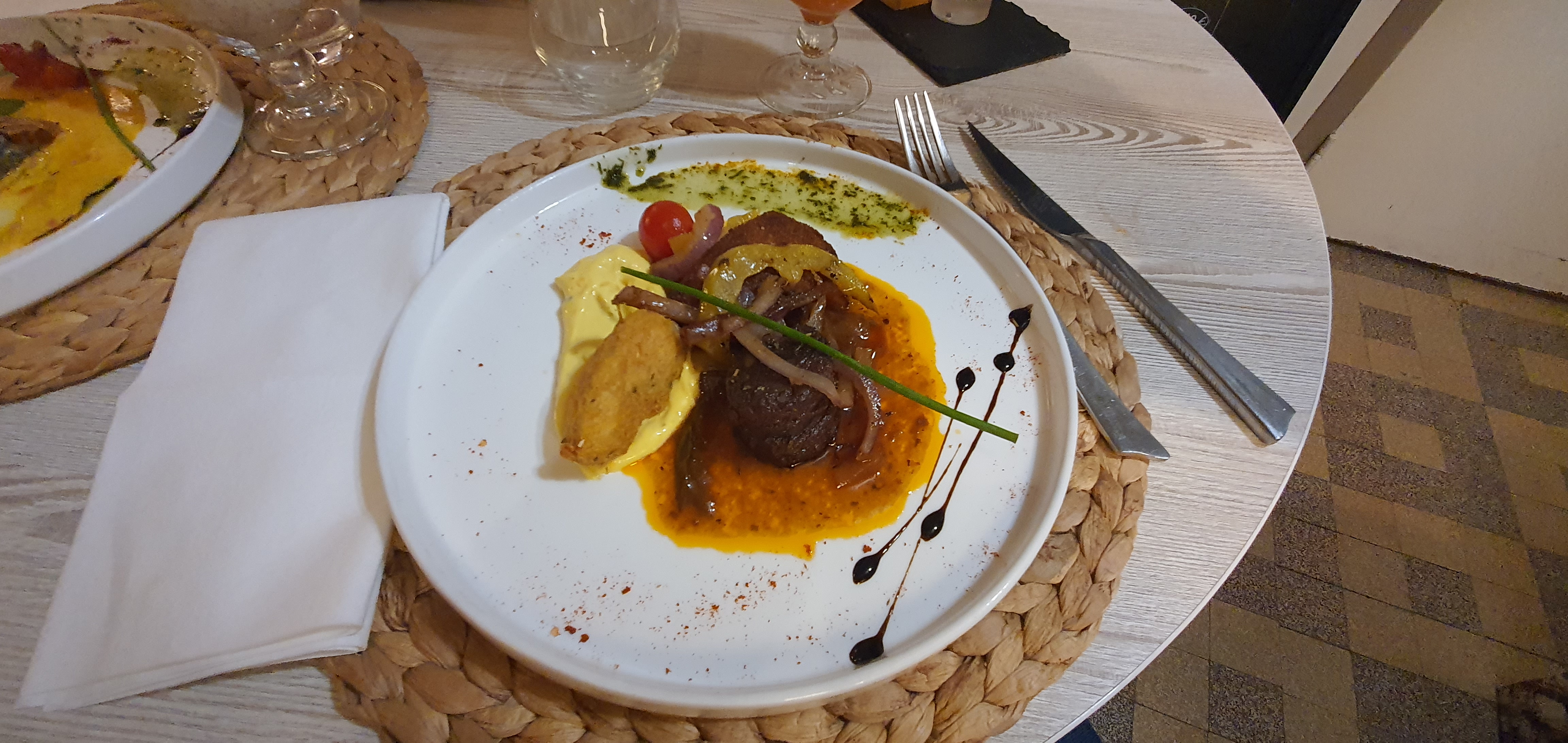 Restau très sympa, décoration faite avec goûts, personnel très agréable, Attente un peu longue mais c'était une soirée animée dans les rues de Moret donc je conçois cette attente pour cette soirée spéciale, les plats étaient délicieux, une bonne adresse assurément ! Un grand merci au Chef et +1 pour le petit verre de rhum arrangé en fin de repas :)