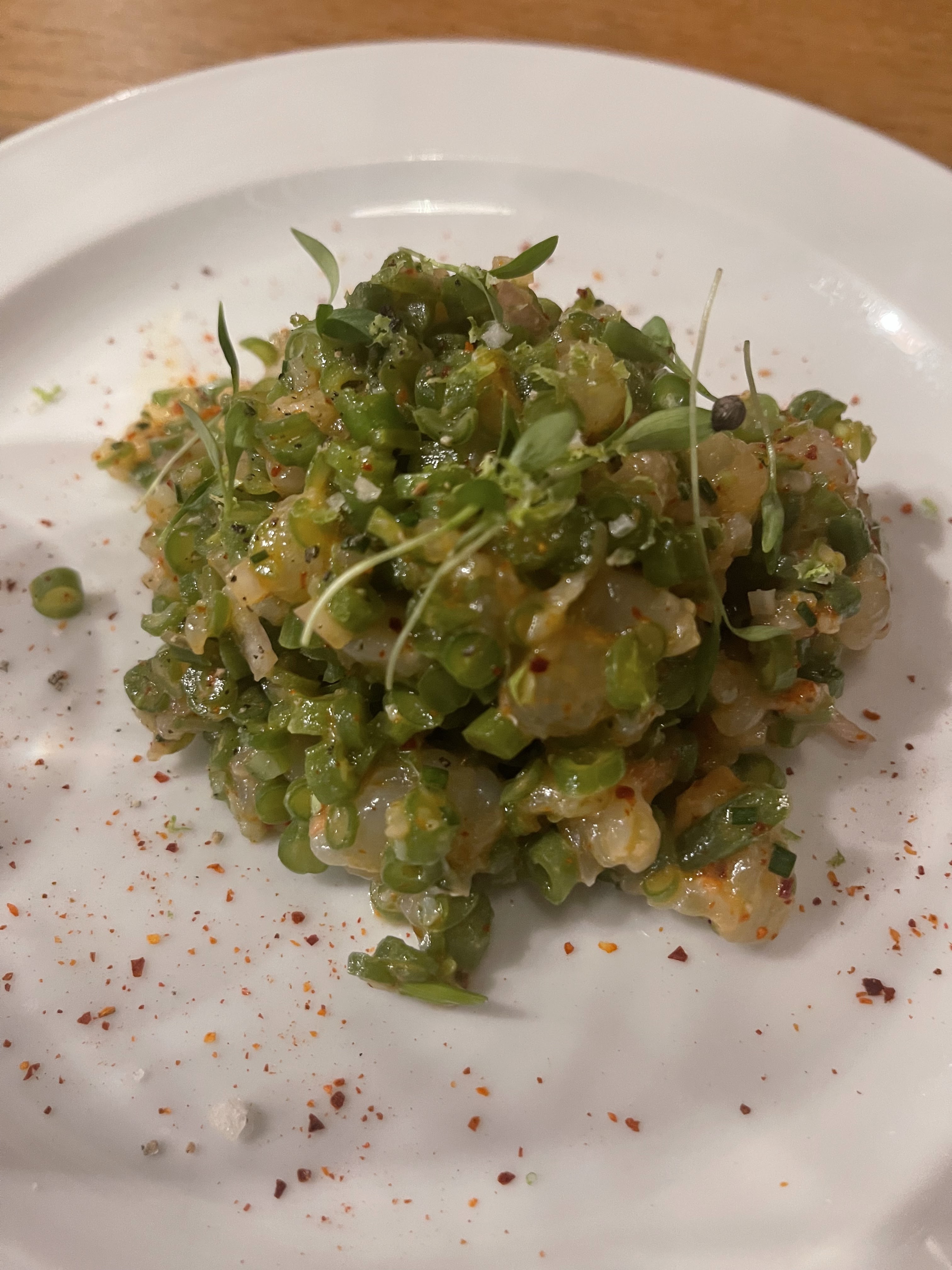 Acceuil très chaleureux par le couple de propriétaires passionnés. Nous avons commencé avec des super cocktails (des vrai craft cocktails), et une belle planche de jambon iberico. Pour le plat, un tartare de canard...un vrai nouveauté, et quelle belle découverte ! Le seul bémol était le vin. La sélection de vin au verre était très limité. Mon premier verre, un vin local, était très acide, et quand j'ai demandé de le changer, le 2ème n'était pas beaucoup mieux. En plus, ils nous ont fait payer les 2 ! C'était bien dommage car le reste du repas était top, mais on n'avait pas envie de prendre une bouteille entière après avoir déjà pris des cocktails.