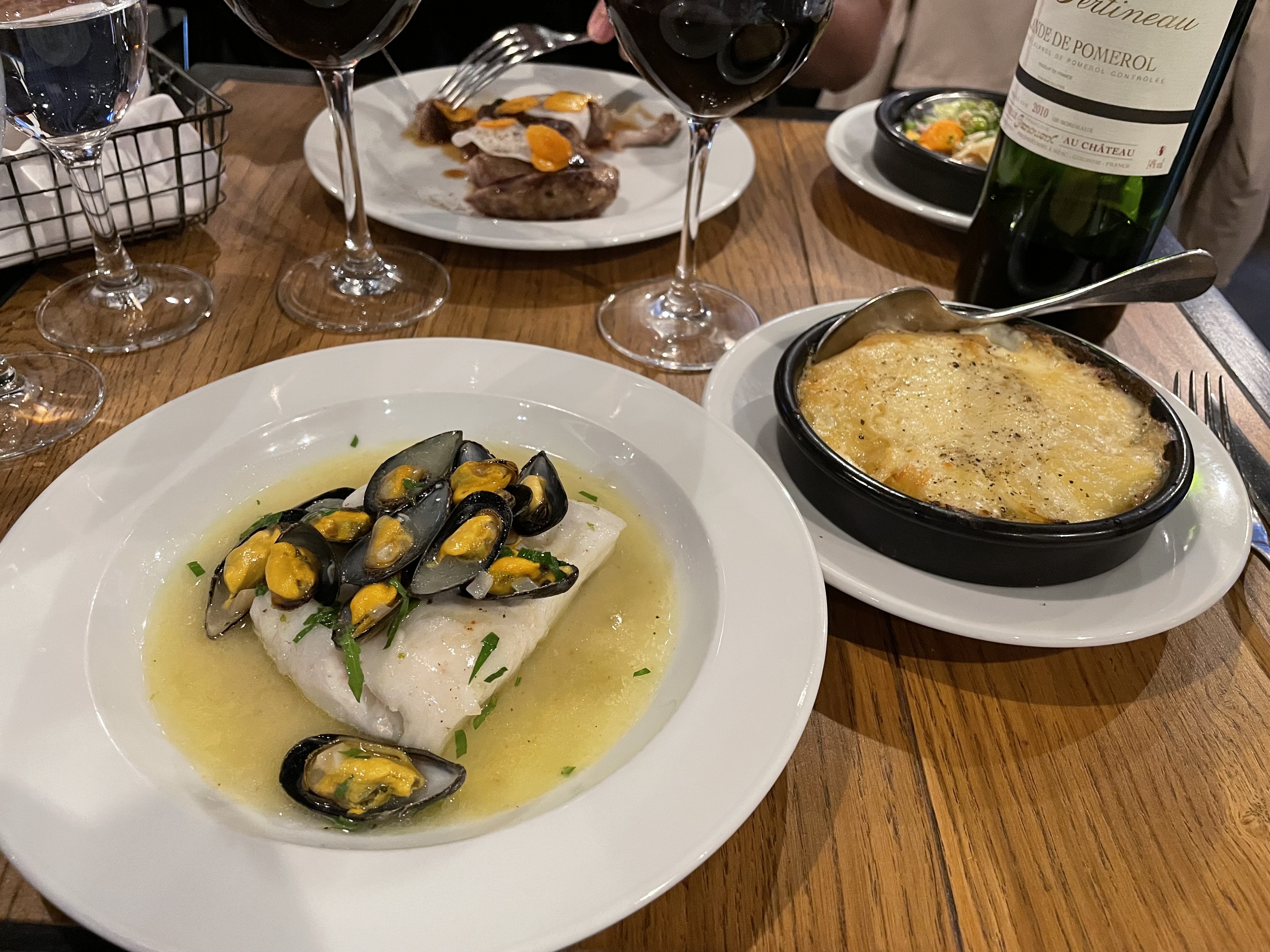 Très bon poisson. Léger fin gourmant. Le dessert, tarte au chocolat, était délicieux et surprenant.