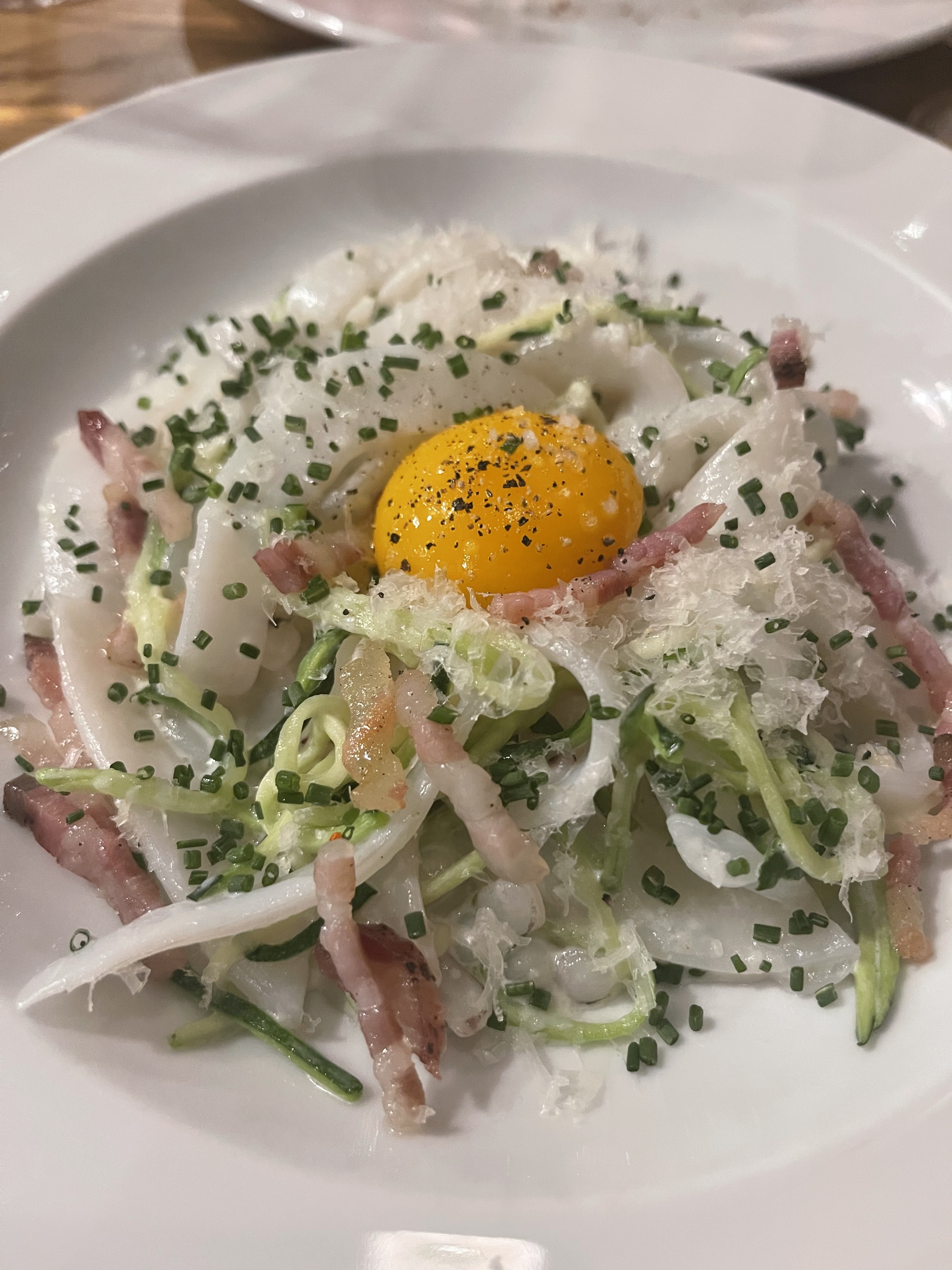 Meilleur repas de l’été - bien meilleur que certains endroits aux additions bien plus salées Excellente carbonara de seiche, délicieux ris de veau et tarte aux myrtilles. Carte des vins intéressantes - peut-être un peu chère