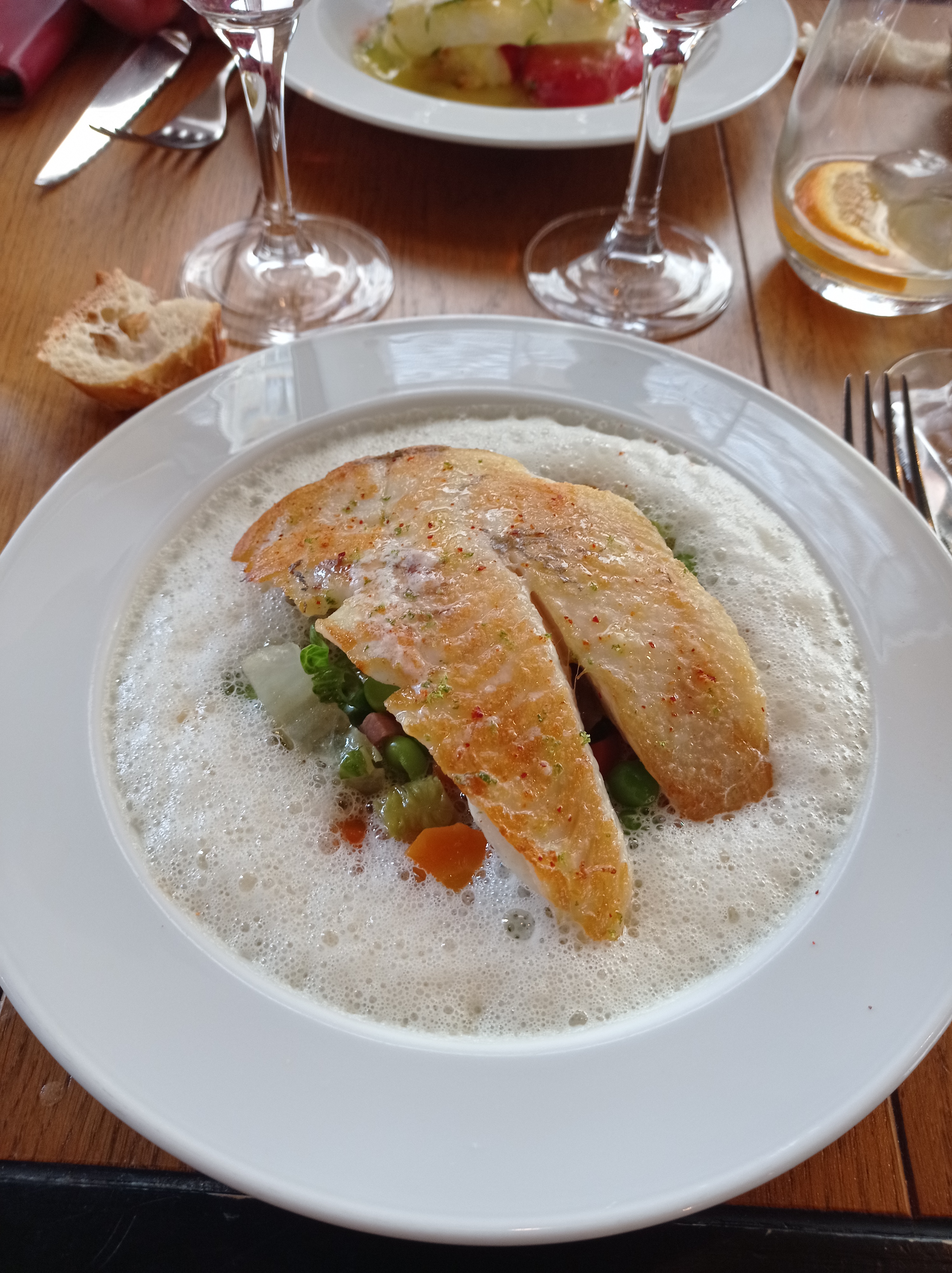 Un merlu à tomber par terre avec son espuma de jus de langoustines et zest de combawa ! Une tuerie merci pour ce délicat moment culinaire