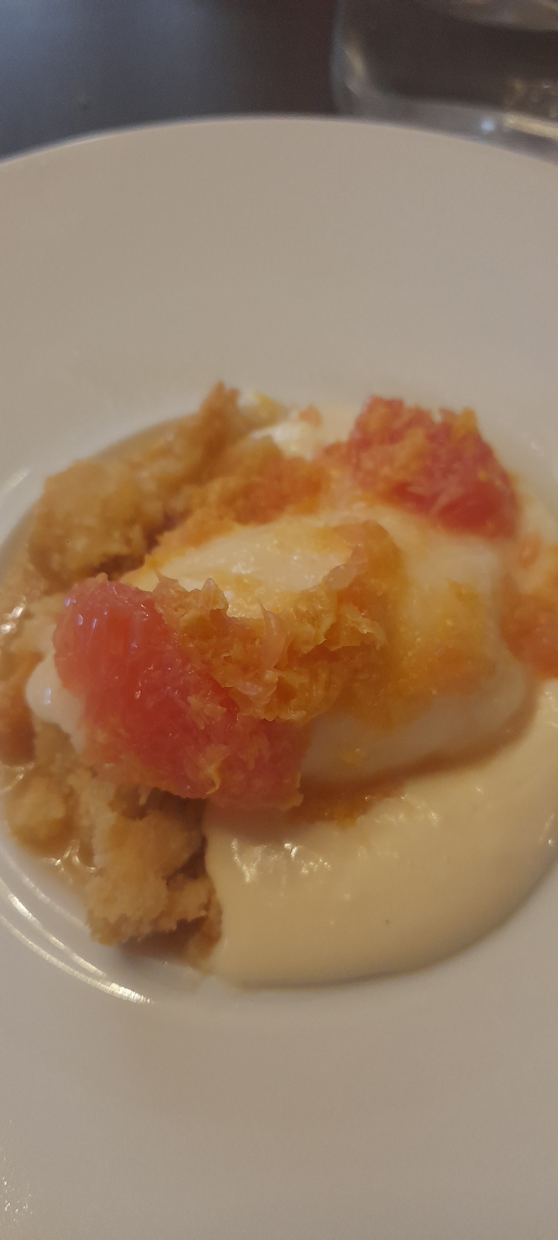 Menu parfait, sauf le tiramisu autour du pamplemousse, qui m'a paru ressembler à un crumble avec une crème au mascarpone.