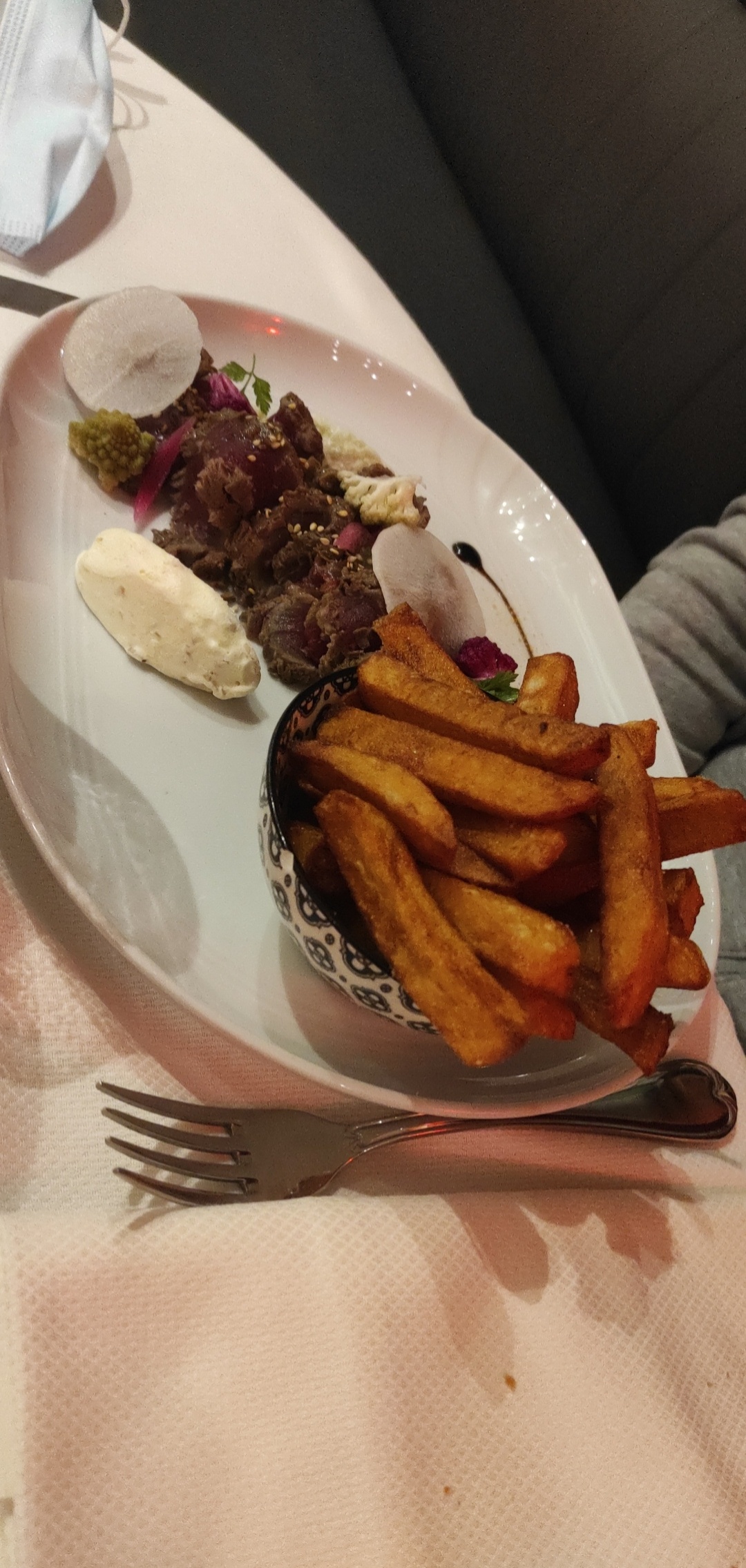 Cuisine pas fine, viande hyper dure, accompagnement pas bon. Mauvaise expérience. Désolé.