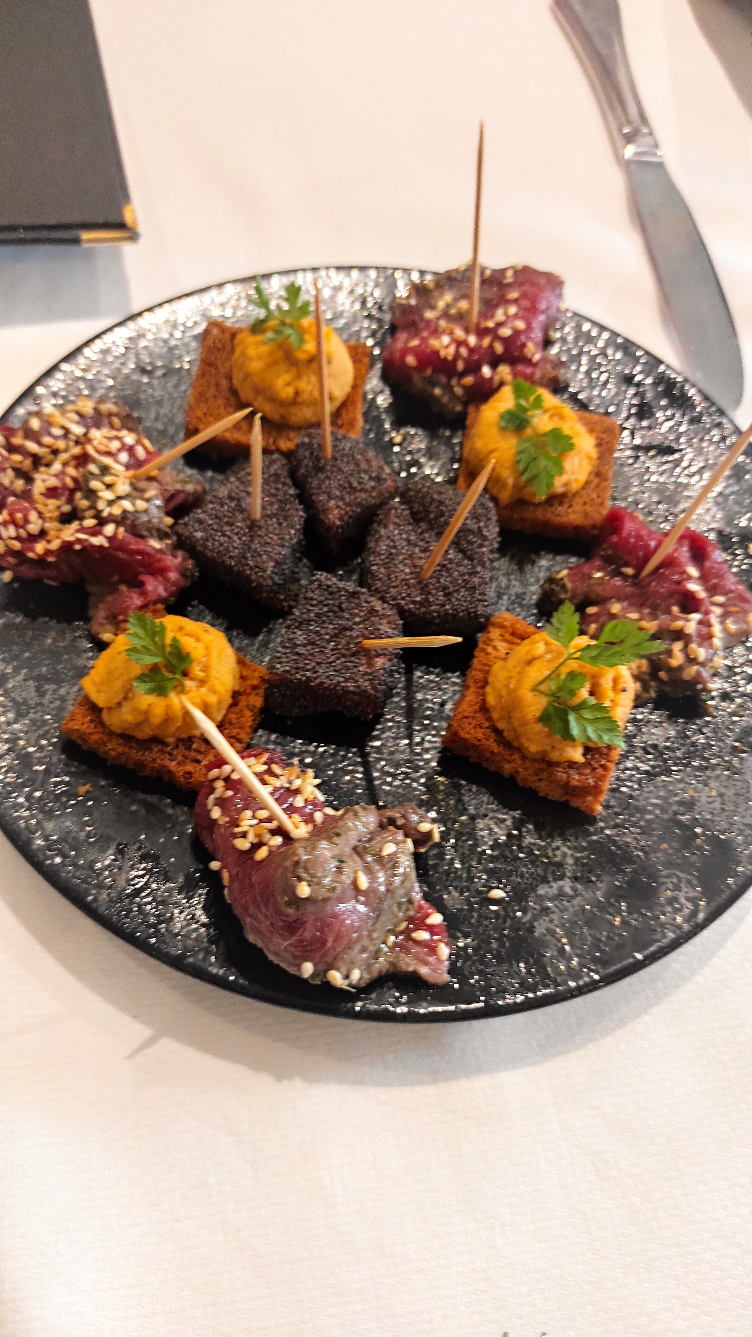 Bon rapport qualité / prix pour le déjeuner business. Mises en Bouches. Belle présentation des assiettes et surtout très bonnes. N'hésitez pas.