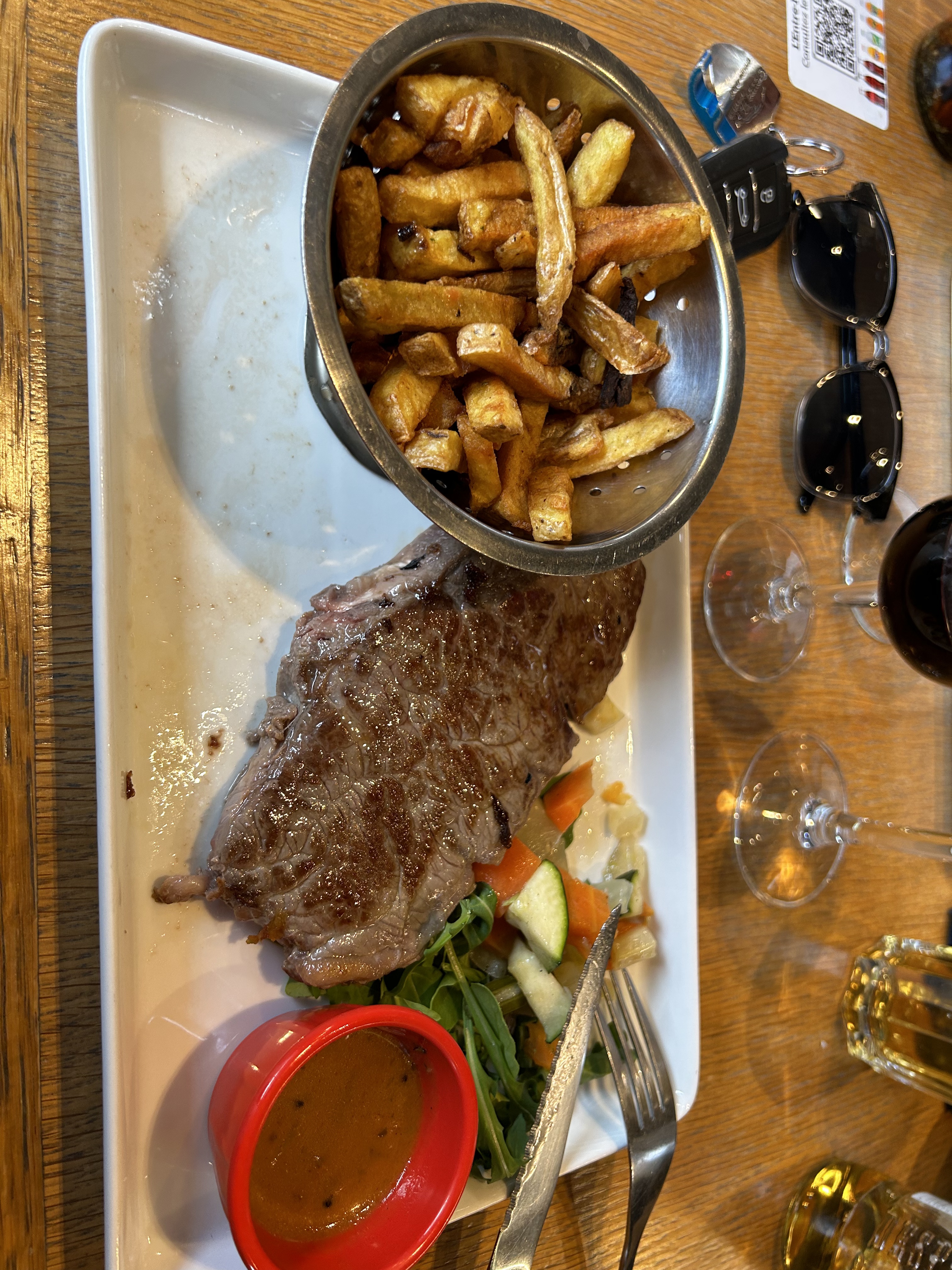 On mange simplement entre collègues à un prix raisonnable en terrasse. Le personnel est agréable, le service juste.