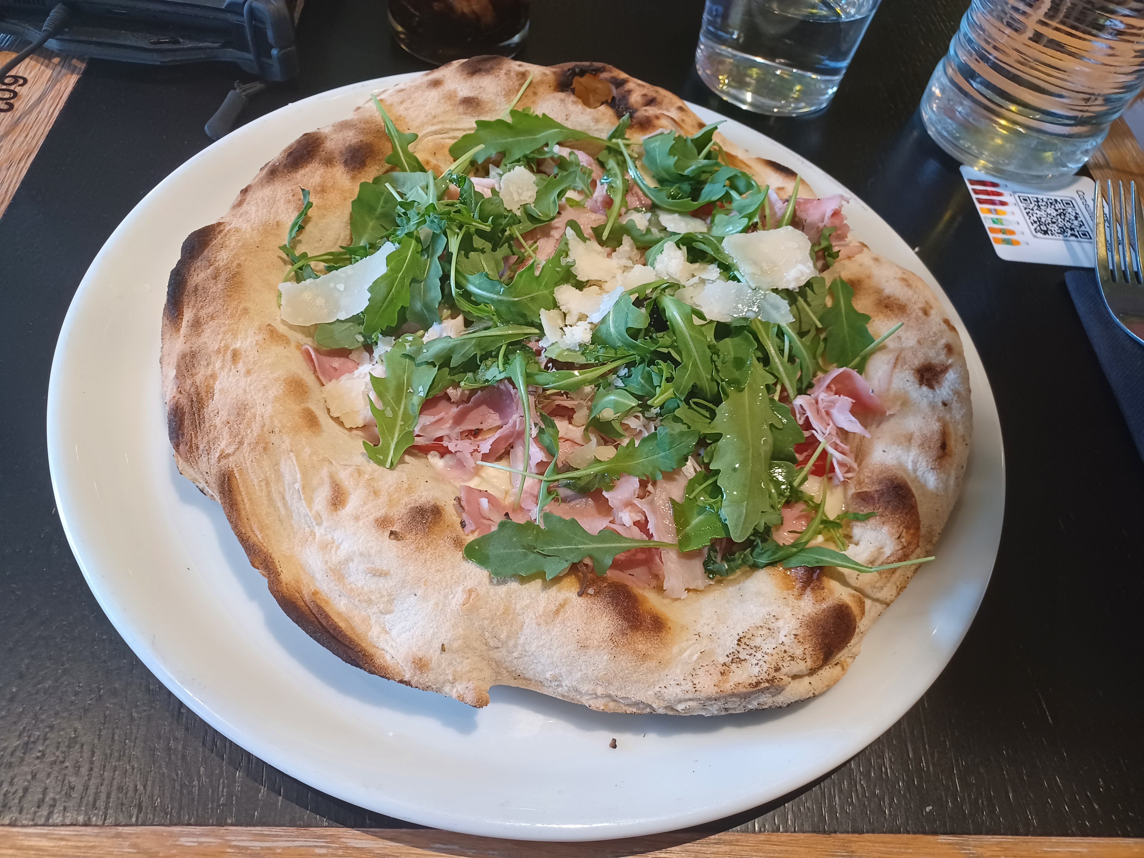 Service rapide avec un grand nombre de personnes, c'est appréciable. Pizzas classiques mais bonnes, prix un poil élevé (14€ la pizza) mais a priori en accord avec la qualité.