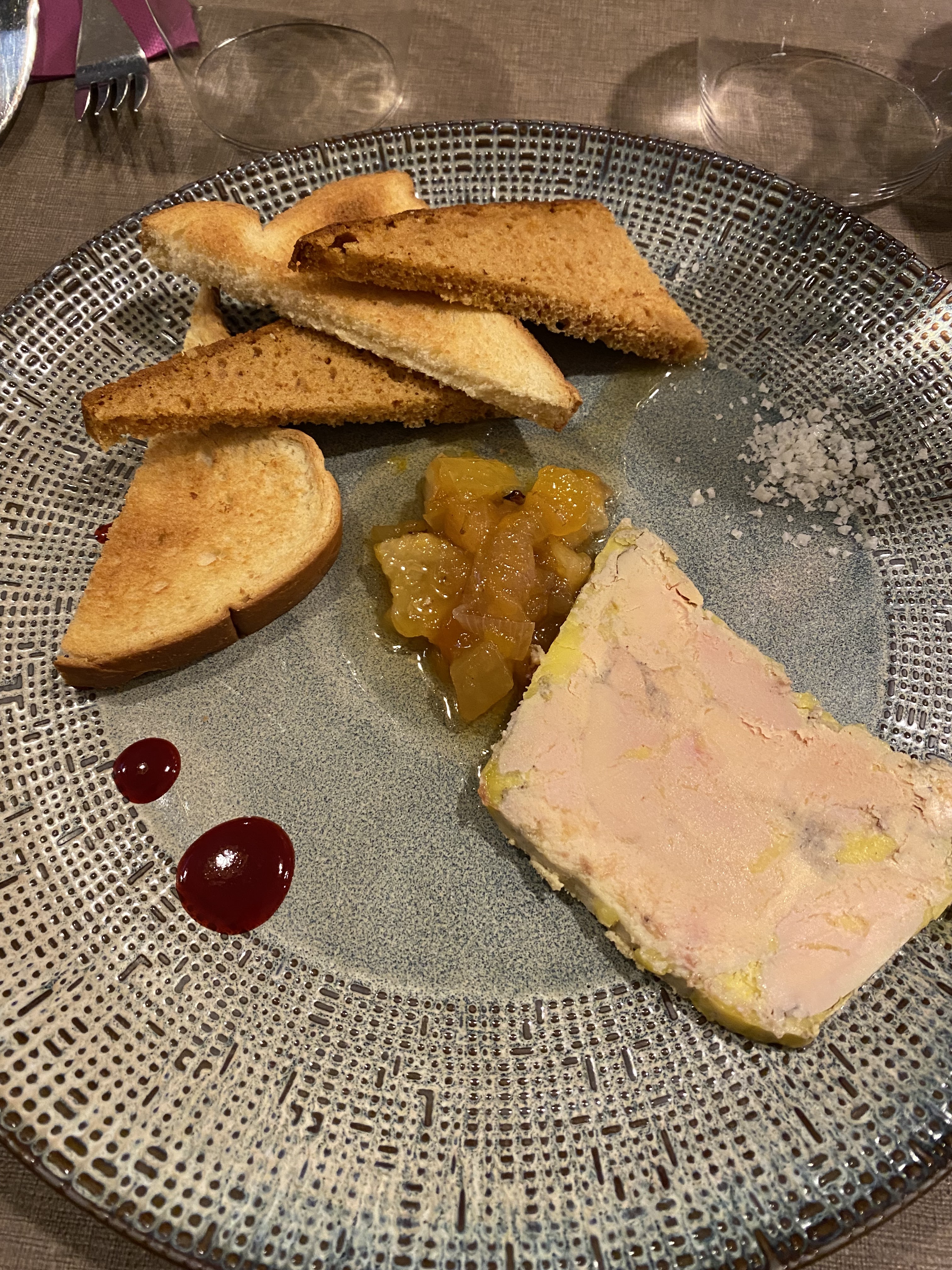 Un peu déçue par le mignon de porc au chèvre et figues car servi sans chèvre et sans figues🤔 jusque avec une sauce sans saveur peut-être au chèvre et aux figues. Déçue également par le dessert : un tartare d'ananas glacé rhum raisins. Dés d'ananas nature et sans goût servis avec glace framboise ! 🤔 J'ai connu mieux dans ce restaurant. Dommage 😕