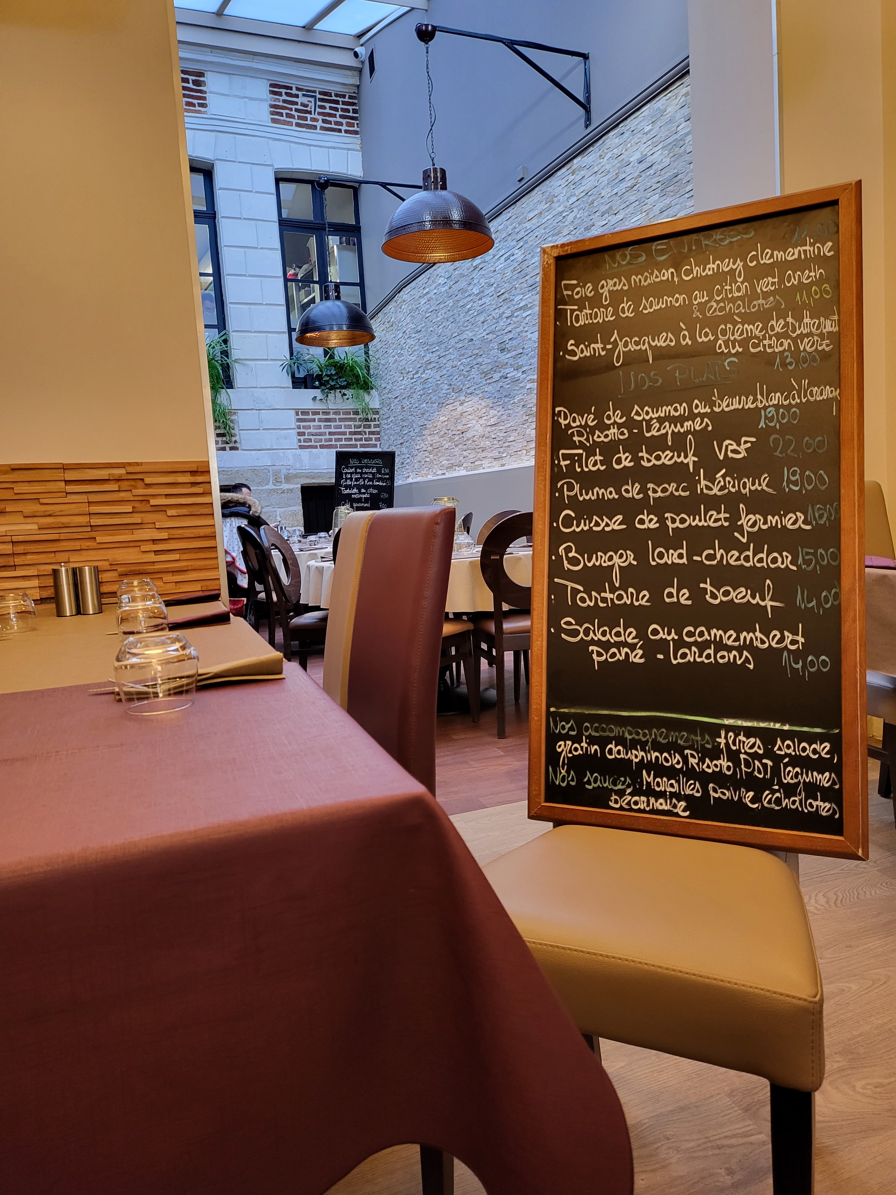 Petite ardoise qui varie quotidiennement, les produits ont l'air frais et la cuisine maison. Les prix sont abordables. Jolie décoration à l'intérieur du restaurant et vue magnifique sur Arras. Service sympathique, dynamique et agréable.