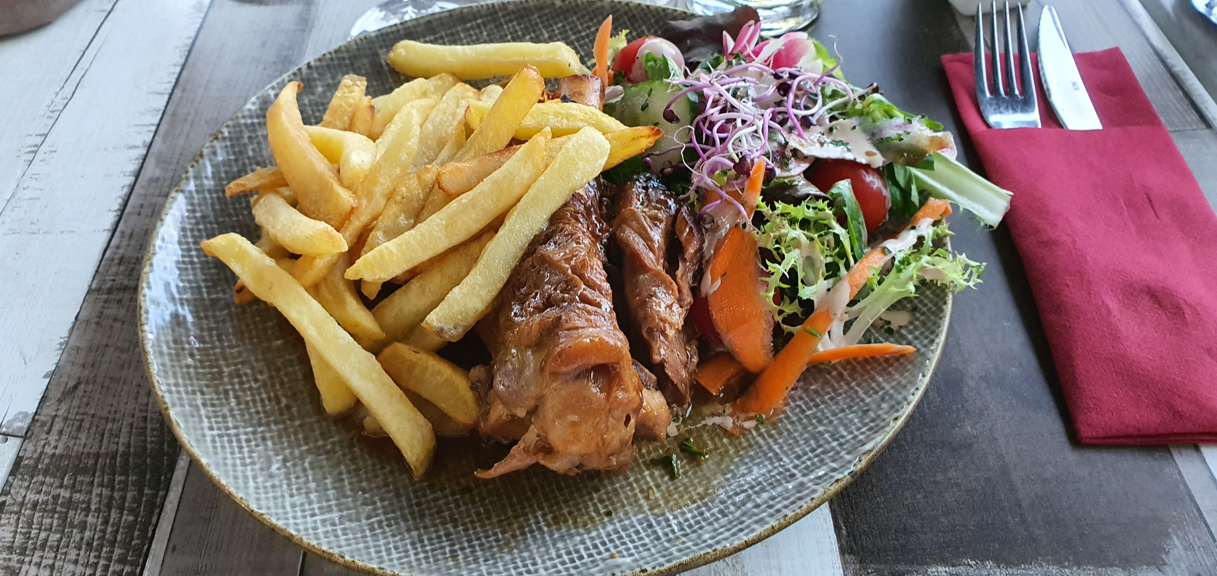 Nous sommes venus déjeuner lors du championnat du monde de la frite,et nous avons été très bien accueillis et la cuisine est excellente et le service parfait. D'ailleurs nous avions commandé 2 spritz et malheureusement alors que mon spritz était entamé de moitié, une guêpe est tombée dans celui-ci ! Eh bien on m'a remplacé et offert un autre spritz . C'était la première fois que nous venions mais ce geste restera en mémoire et nous reviendrons prochainement. Bon courage à tous.