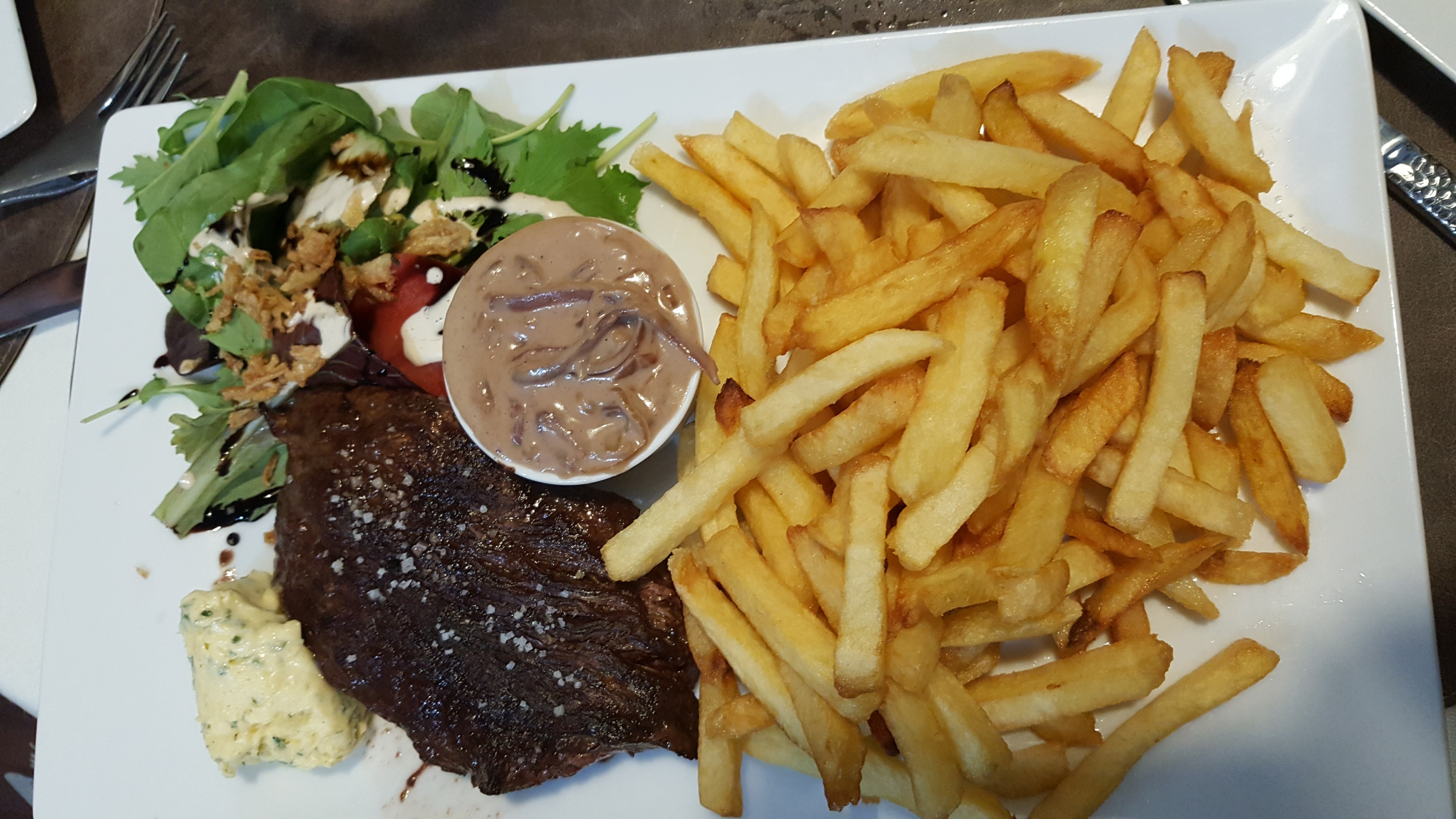 J ai mangé 1 steak tartare délicieux et énorme!