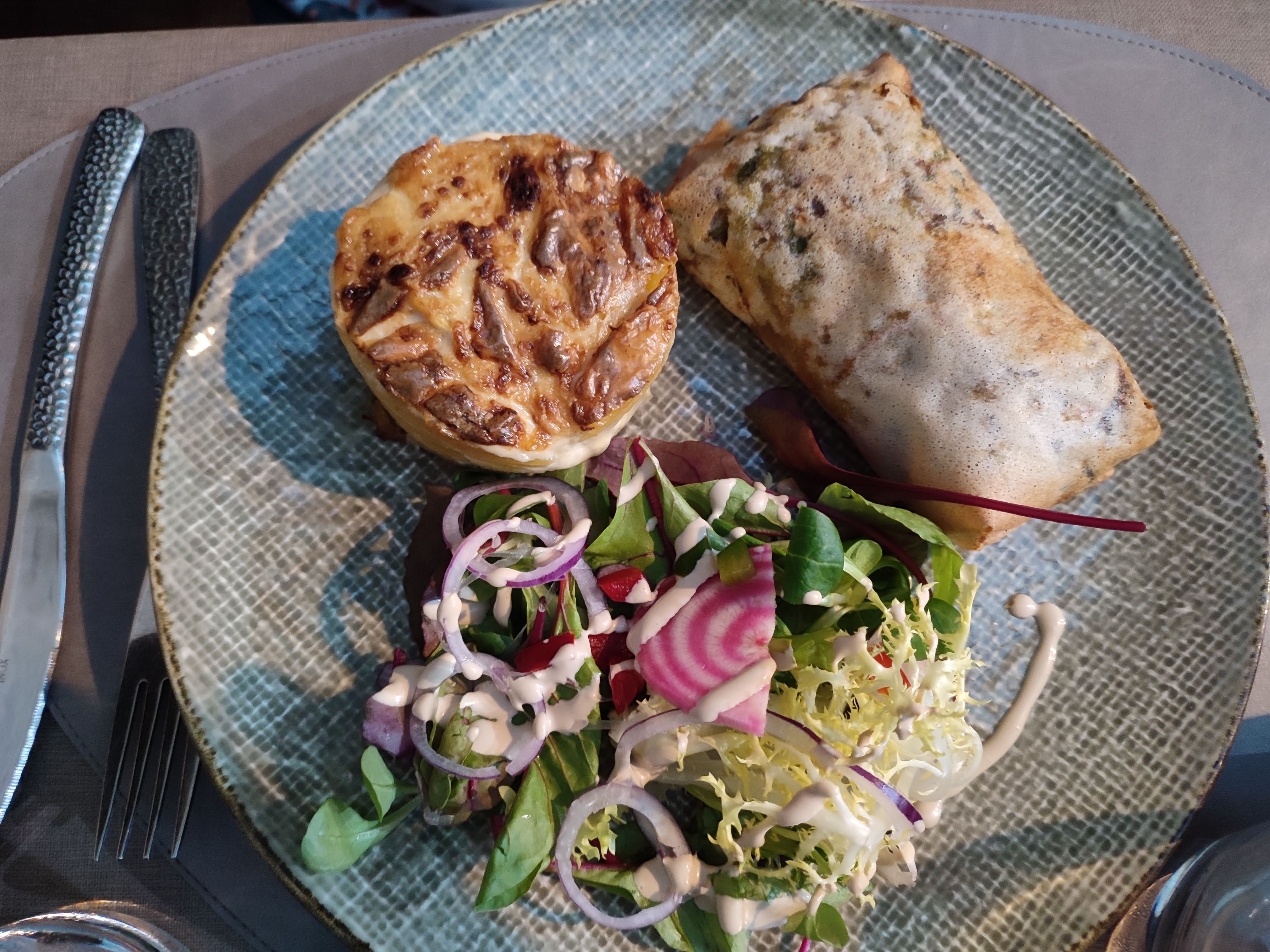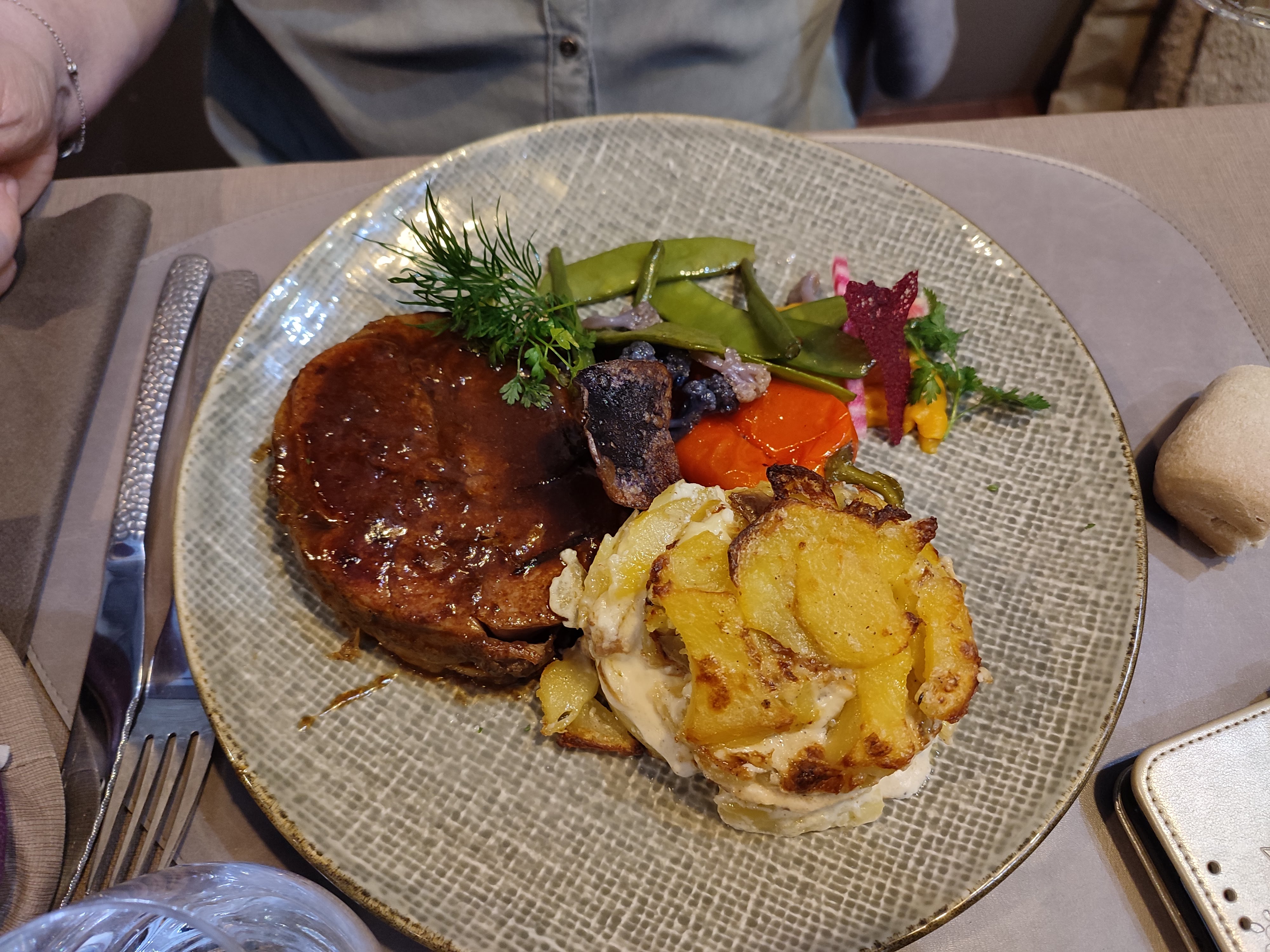 Personnel très agréable, à l'écoute. On nous a pas pressé, on a eu le temps de manger tranquillement Cuisine très bonne, de belles assiettes