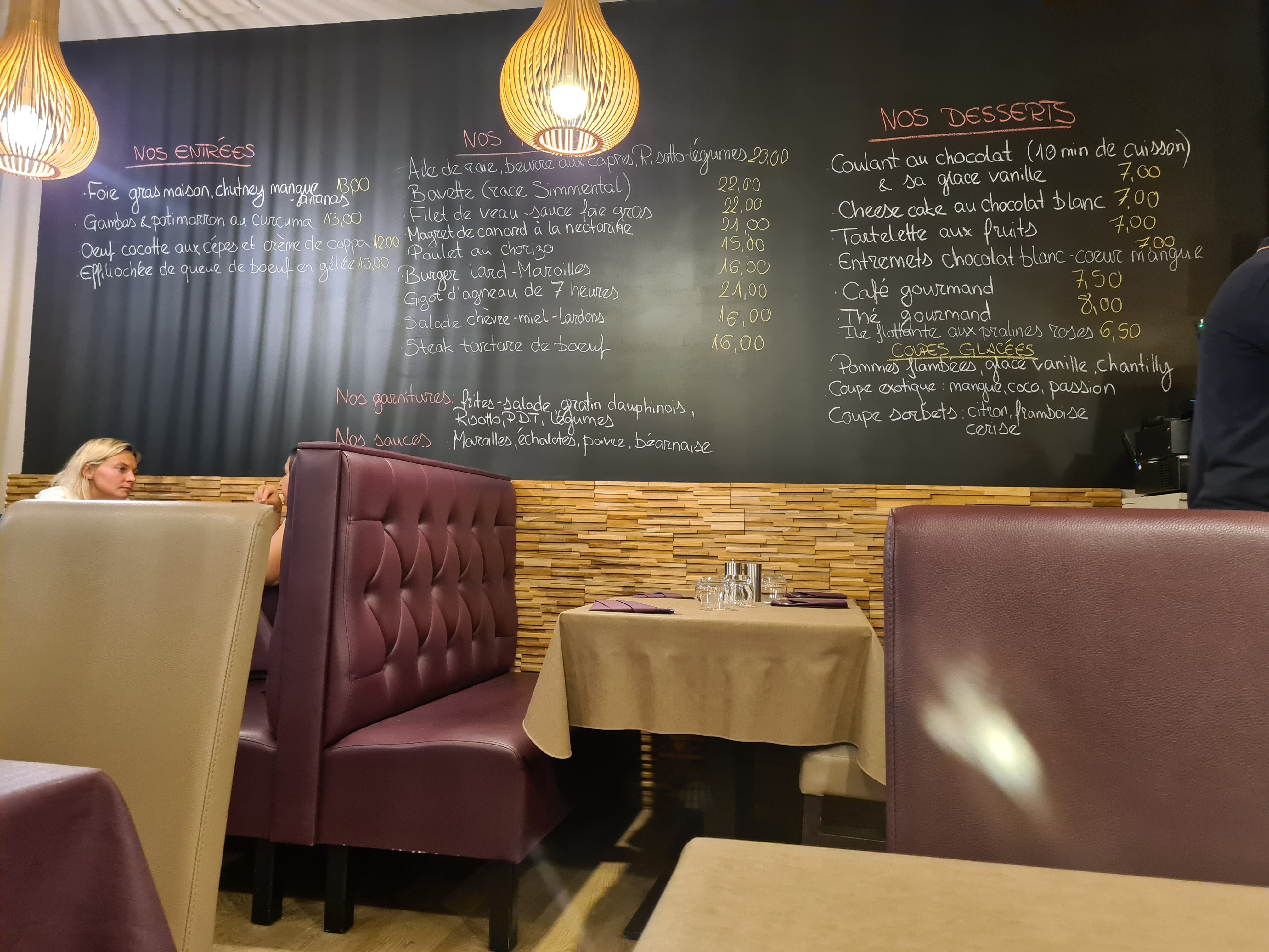 1er resto depuis un moment sans enfants. Parfait 🙂🙂. Bon accueil Nous nous sommes régalés, produits de bonne qualité, très bien cuisiné. Tarif correct 73€ pour 2 : apero, plat, boisson et dessert. Idéal pour une sortie en amoureux.