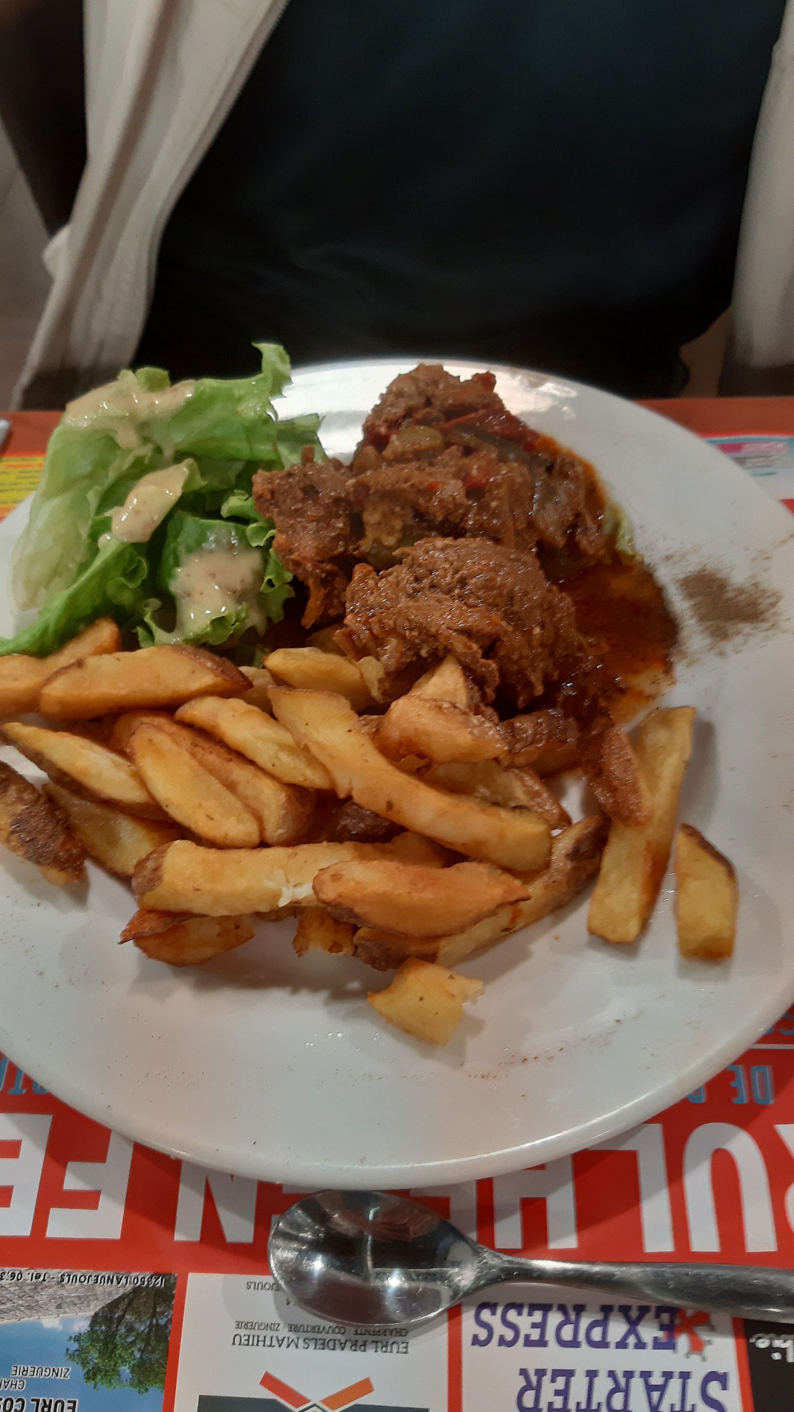 Bon accueil, frites bonnes. Petit effort a faire sur le vin de table....
